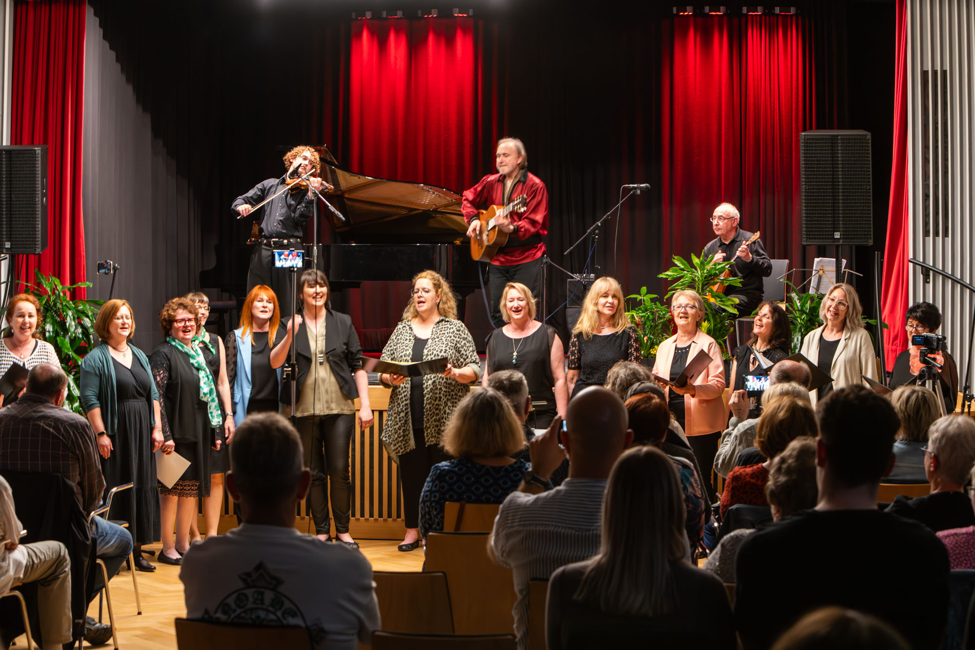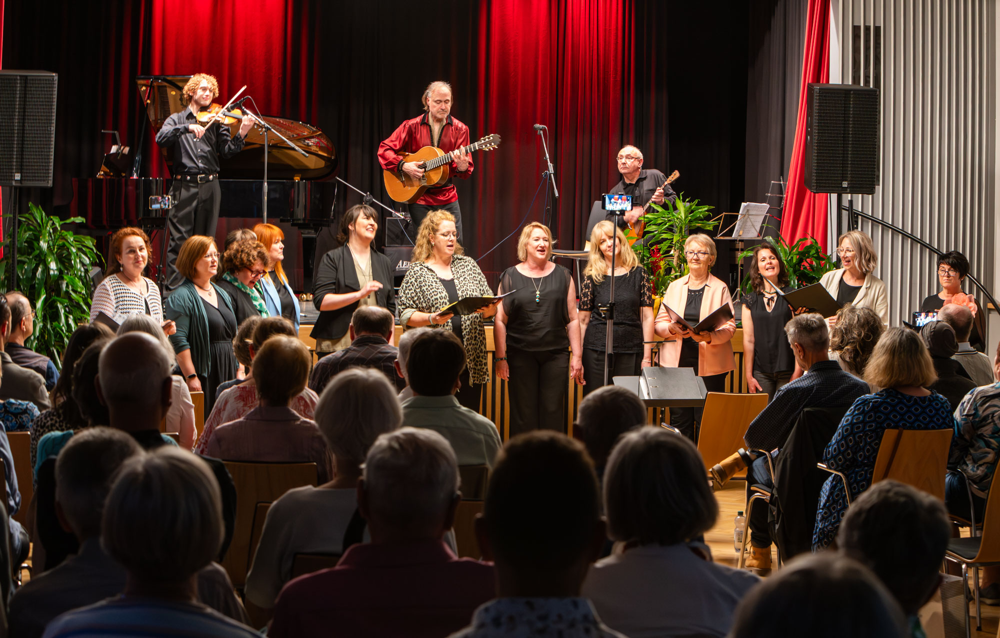 Zum Schluss des Programms formierten sich nochmals die „Kraichgau Singers“ vor der Bühne und sangen – begleitet von zwei Geigen, einer Balalaika und einer Gitarre – John Lennons Hit „Imagine“. Nelli fungierte dabei einmal mehr als Solistin. Das Publikum ging anschließend dankbar nach Hause. Niemand beschwerte sich darüber, dass die Veranstaltung mit einer knappen halben Stunde Verspätung endete, offenbar haben die Besucherinnen und Besucher die „Feurige Abendmusik“ uneingeschränkt genossen....