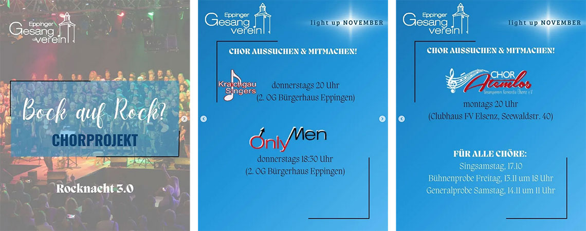 Für unser Konzert „Rocknacht 3.0“ im Rahmen von light up November am 14.11. starten wir einen Projektchor. In dieser Zeit kannst du ganz unverbindlich in unseren Chor schnuppern und gemeinsam mit uns ein rockiges Konzertprogramm auf die Bühne bringen.