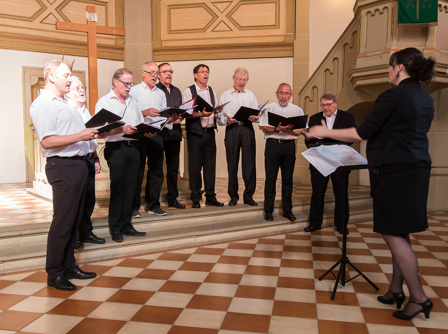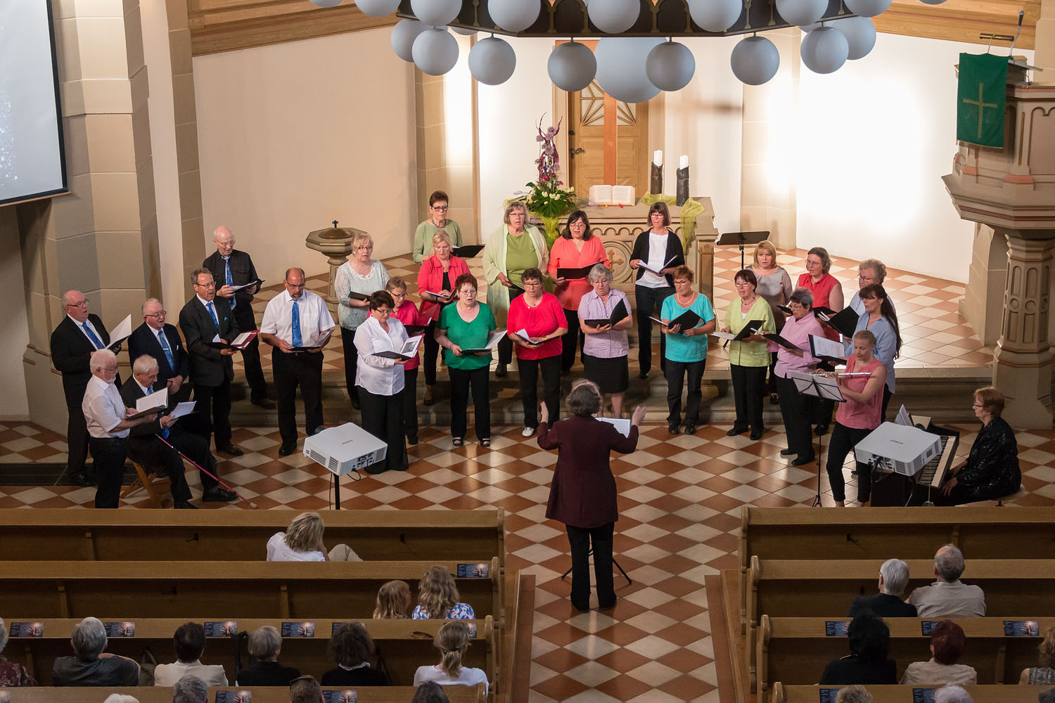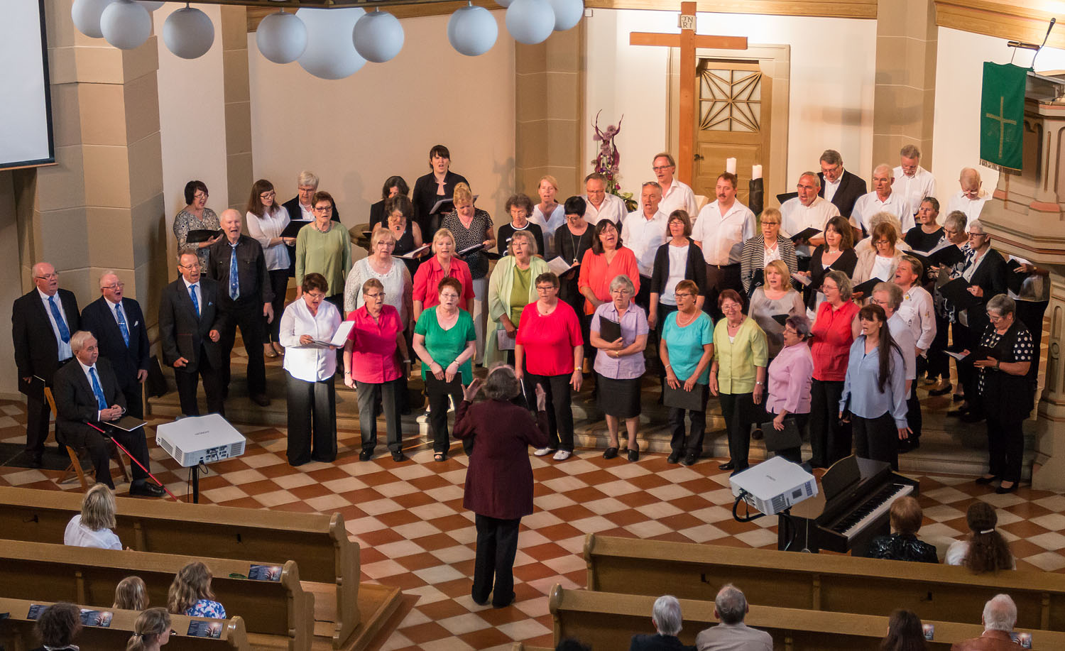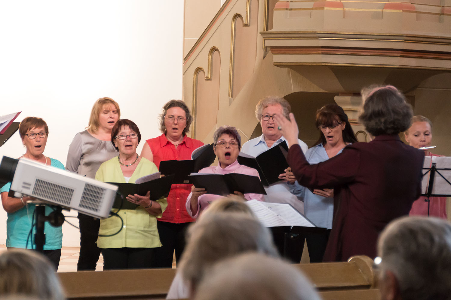 Danach füllte sich der Altarraum zusehends, denn jetzt gesellten sich auch die übrigen „Kraichgau Singers“ dazu. Mit dem Gospel „He's Always Close To You“, dem Leonard-Cohen-Titel „Halleluja“ - arrangiert von ihrer Dirigentin – und „For The Beauty Of The Earth“ hatten sich die „KS“ Beiträge ausgesucht, die ebenfalls hervorragend zum Thema Schöpfung passten.