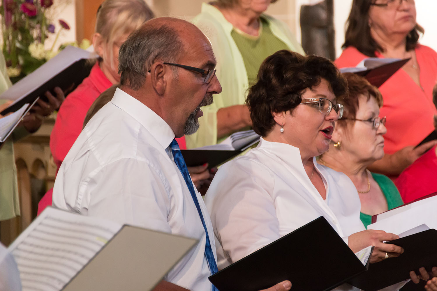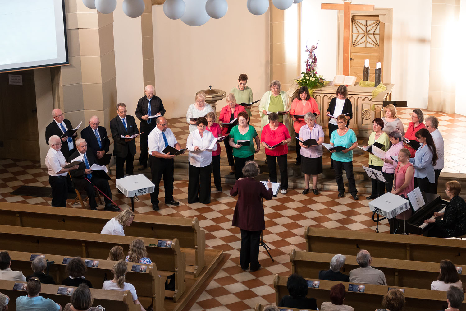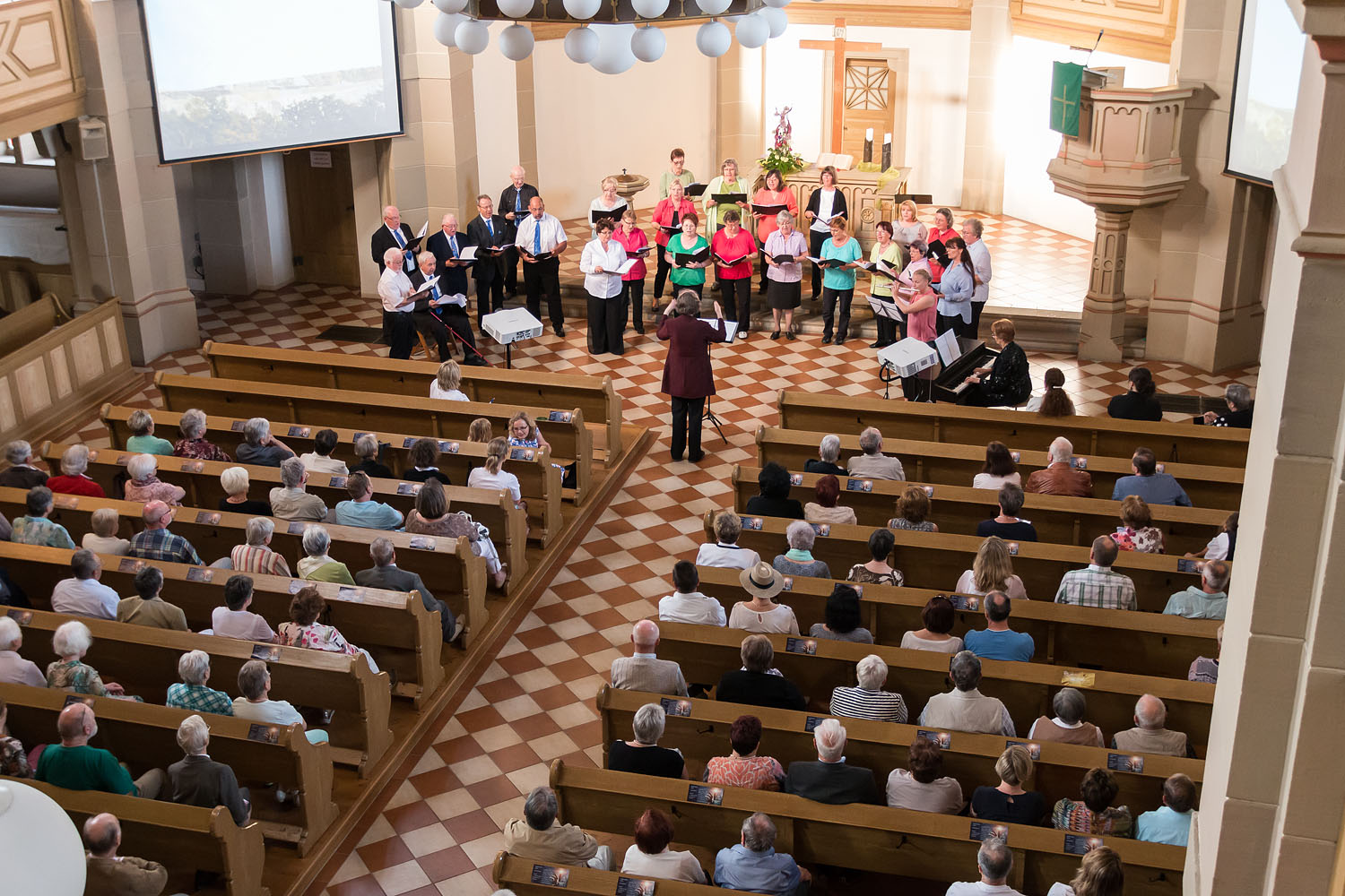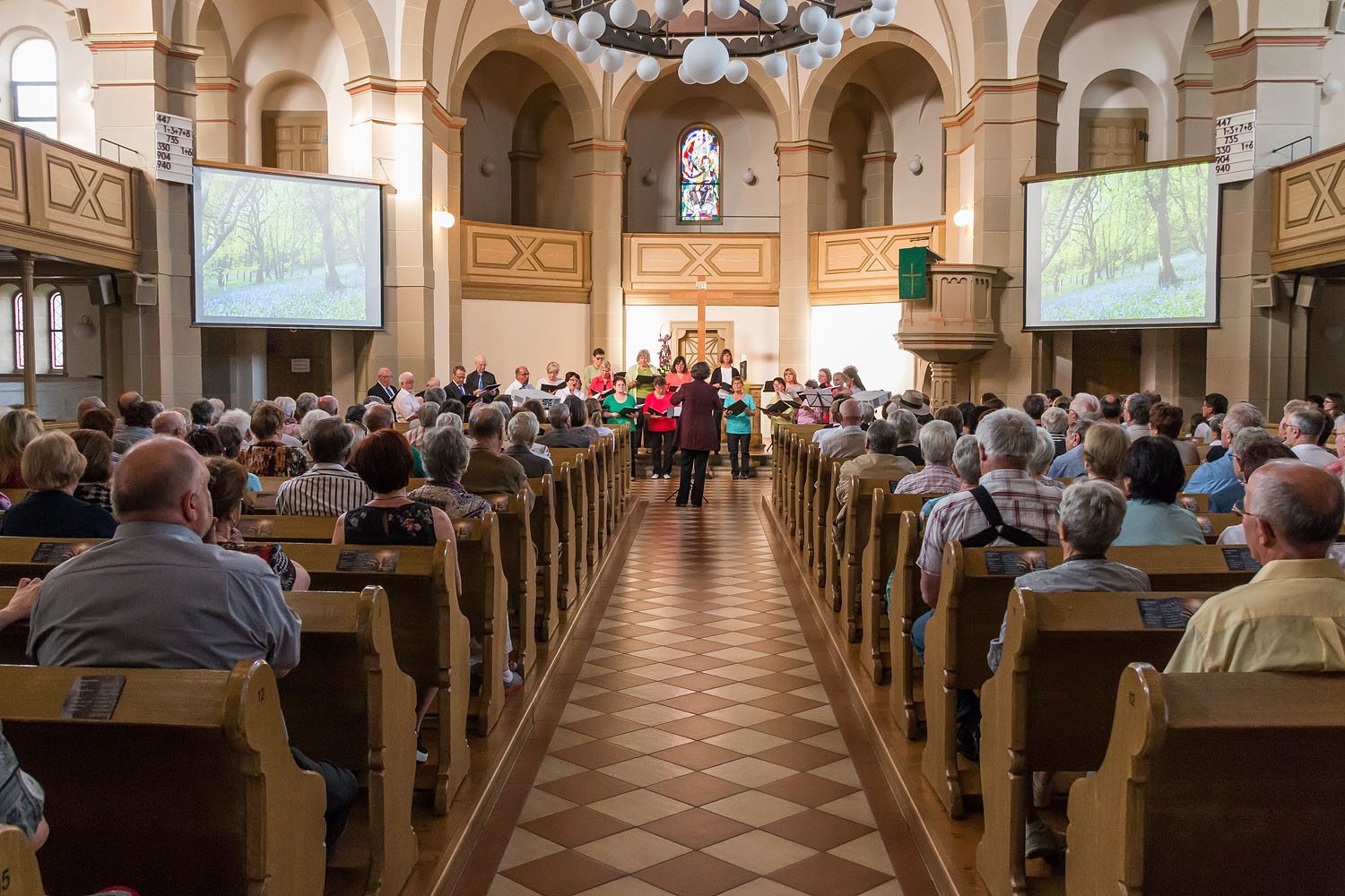 Danach füllte sich der Altarraum zusehends, denn jetzt gesellten sich auch die übrigen „Kraichgau Singers“ dazu. Mit dem Gospel „He's Always Close To You“, dem Leonard-Cohen-Titel „Halleluja“ - arrangiert von ihrer Dirigentin – und „For The Beauty Of The Earth“ hatten sich die „KS“ Beiträge ausgesucht, die ebenfalls hervorragend zum Thema Schöpfung passten.