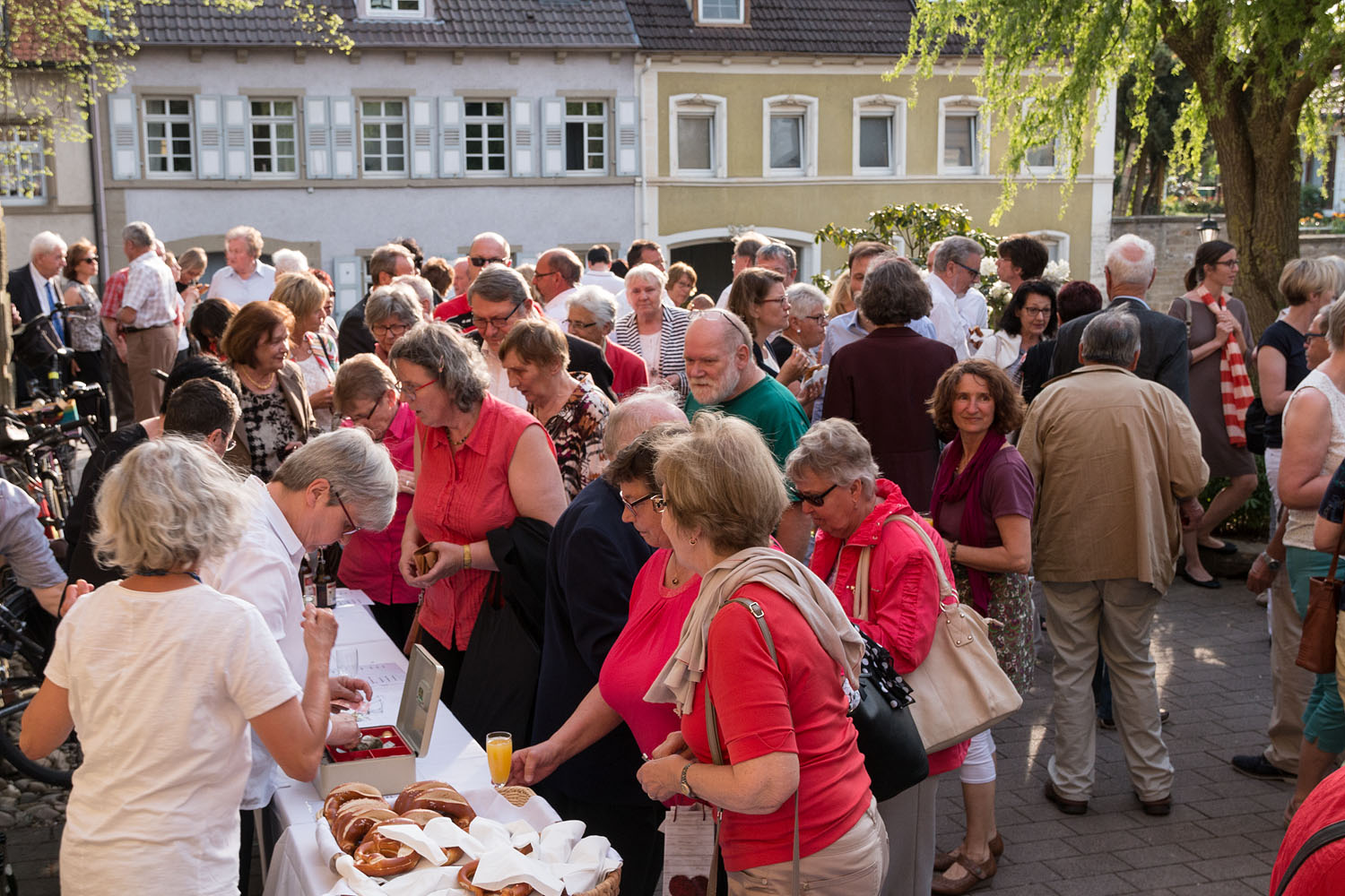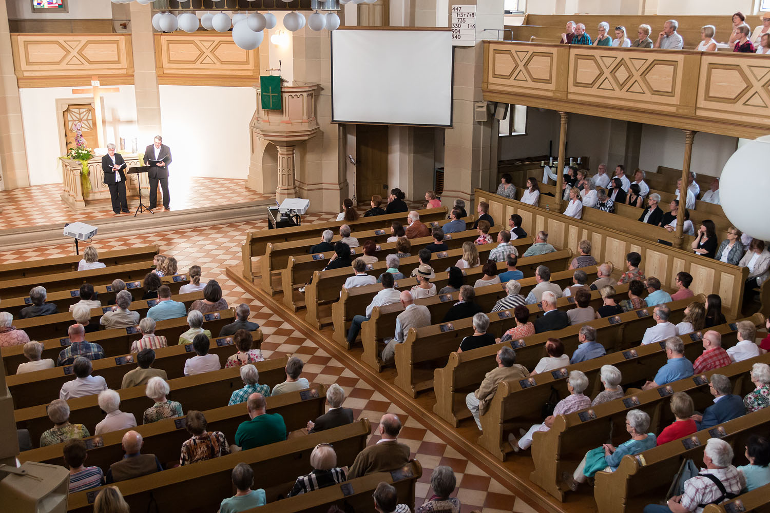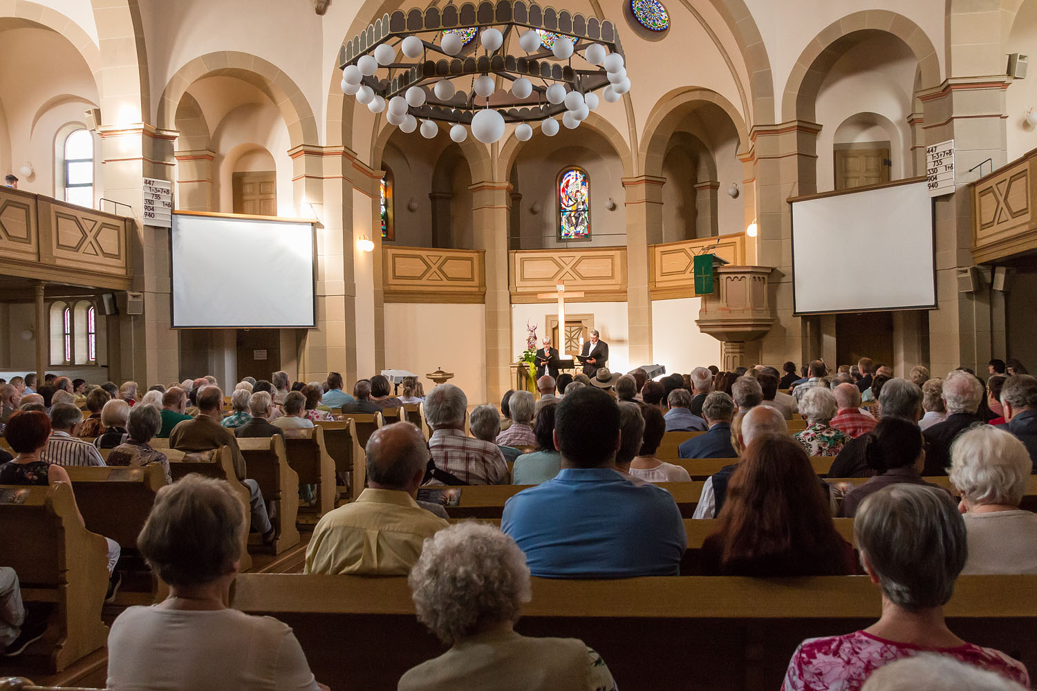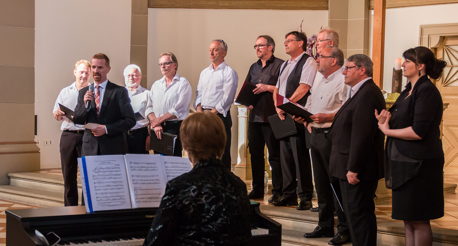 Anhand einiger Beispiele veranschaulichte der Hausherr, Herr Pfarrer Bockelmann, in seinen kurzen Grußworten, wie weit zurück die Anfänge des Gesangvereins reichen: Im Gründungsjahr 1843 waren Autos noch nicht erfunden. Auch die Bahnlinie Heilbronn - Karlsruhe existierte damals noch nicht. Und selbst die Evangelisch Stadtkirche wurde erst rund 20 Jahre später erbaut.