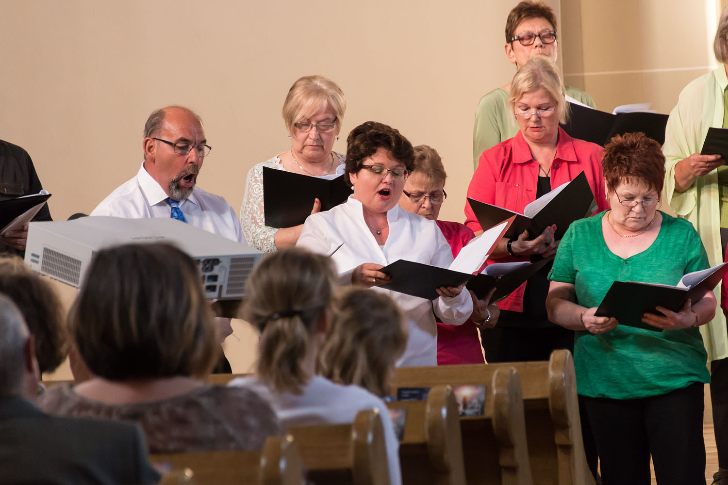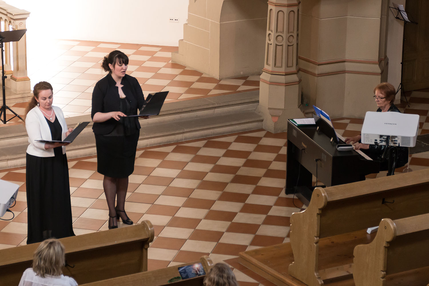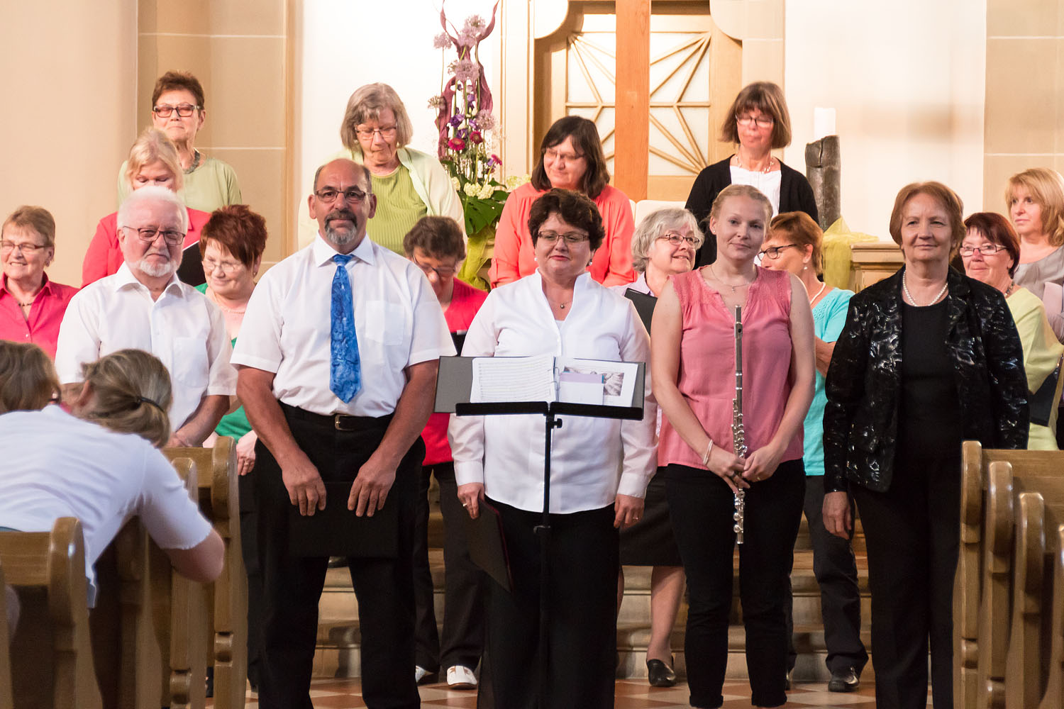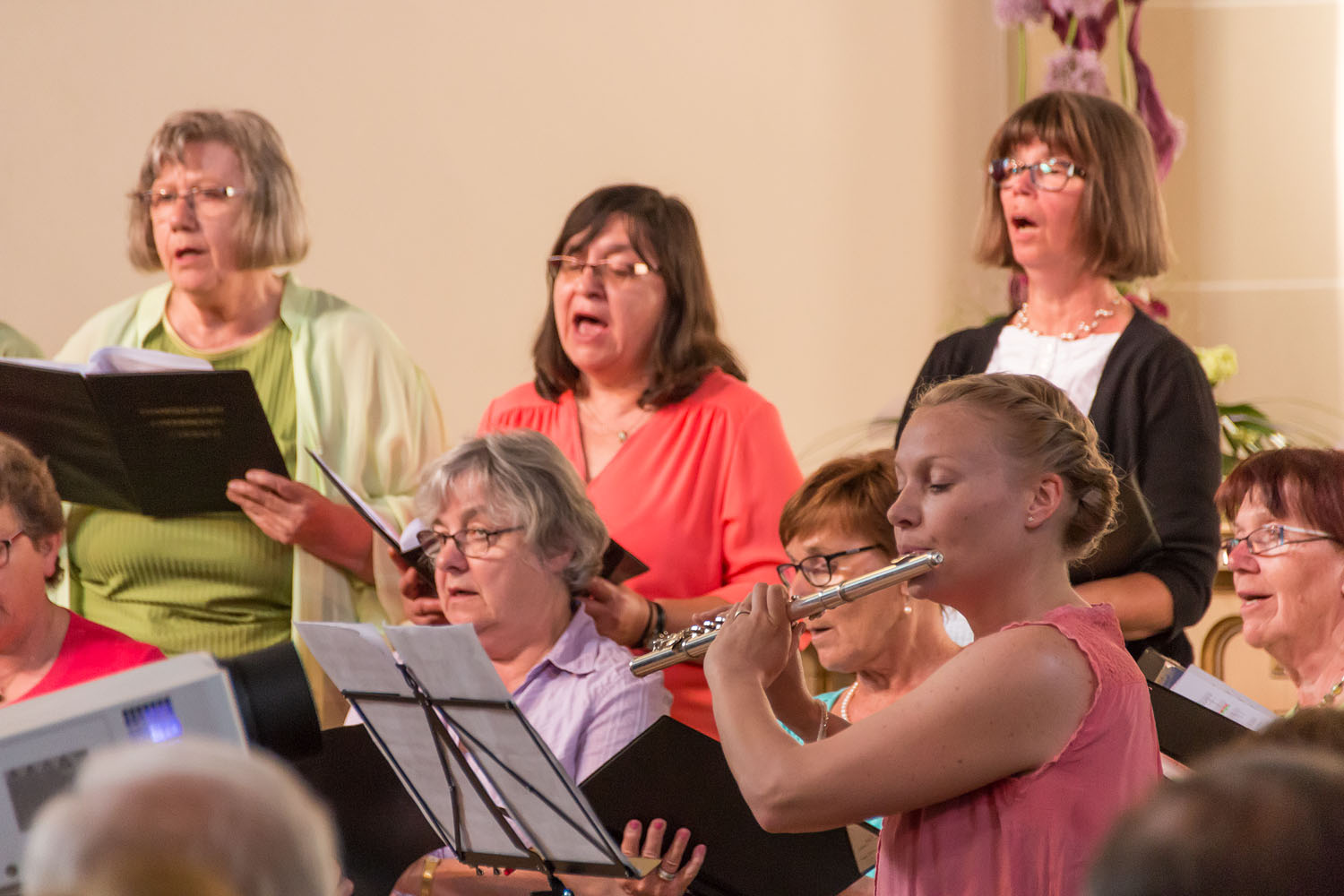 Im Anschluss schlug die große Stunde des „Gemischten Chors“, der sich eigens für diese Aufführung mit etlichen Projektsängerinnen und -sängern verstärkt hatte. Diese Formation steht seit einigen Jahren unter der Leitung von Monika Morgenstern. Sie war die Ideengeberin, setzte sich mit dem Komponisten in Verbindung und holte dessen Erlaubnis zur Aufführung seines Stücks ein. Schon letztes Jahr begannen die Proben. In „Alles ist gut gemacht“ bereitete der Bremer Kirchenmusiker Oliver Rosteck einmal mehr die Schöpfung musikalisch auf. Heraus kam dabei ein kleines, aber feines Werk für Solostimmen, Querflöte, Klavier und dreistimmigem Chorgesang. Als Solisten glänzten Elisabeth Jungblut (Sopran) und Herbert Brüssel (Bass). Äußerst einfühlsam und dezent, dabei aber trotzdem bestimmt und sicher, setzten Sabrina Pretz (an der Querflöte) und Elisabeth Zich (am Klavier) ihre musikalische Akzente. Sehr sicher zeigten sich auch die die Sängerinnen und Sänger des erweiterten „Gemischten Chors“. Mit einem lang anhaltenden Applaus bedankte sich das Publikum bei den Mitwirkenden.
