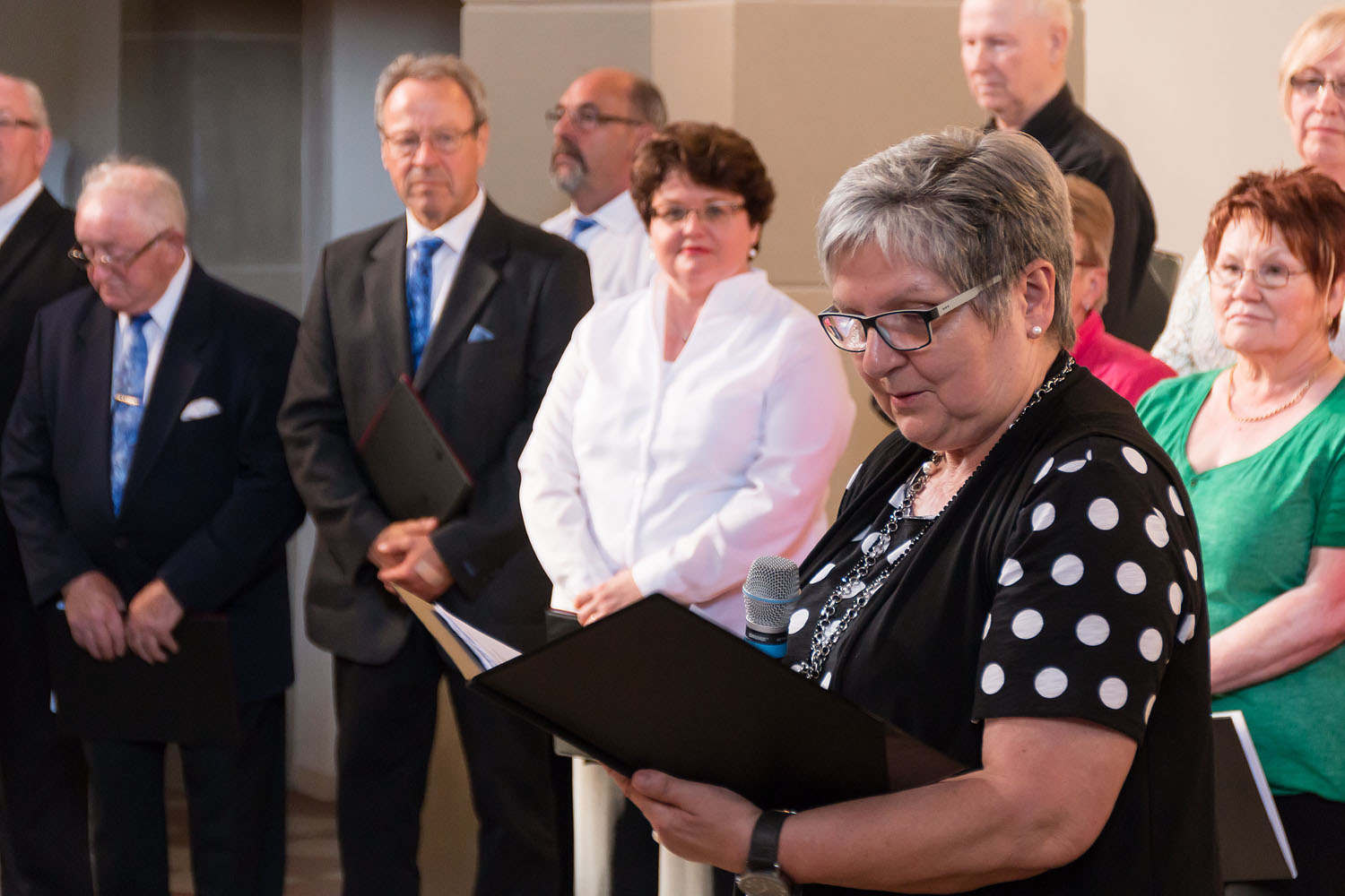 Anschließend eröffnete das Männerensemble „Only Men“ mit „You Raise Me Up“ das Programm, bevor Vereinschefin Hanne Bartel-Thunert einige Ehrengäste, aber auch alle Anwesenden offiziell und mit herzlichen Worten begrüßte. Die neun Herren unter ihrer Dirigentin Nelli Holzki sangen anschließend noch „Look At The World“, ein zweisprachiges Loblied auf die Schönheit der Natur.