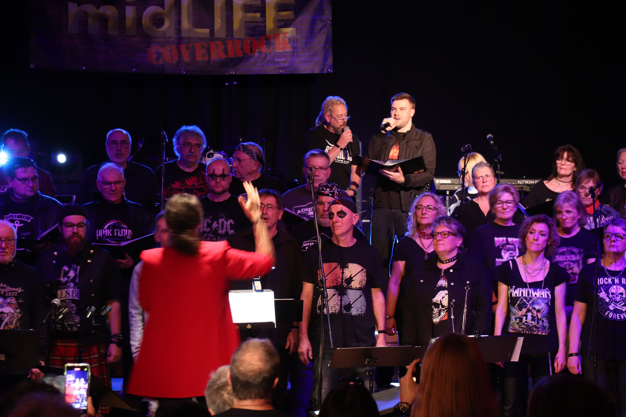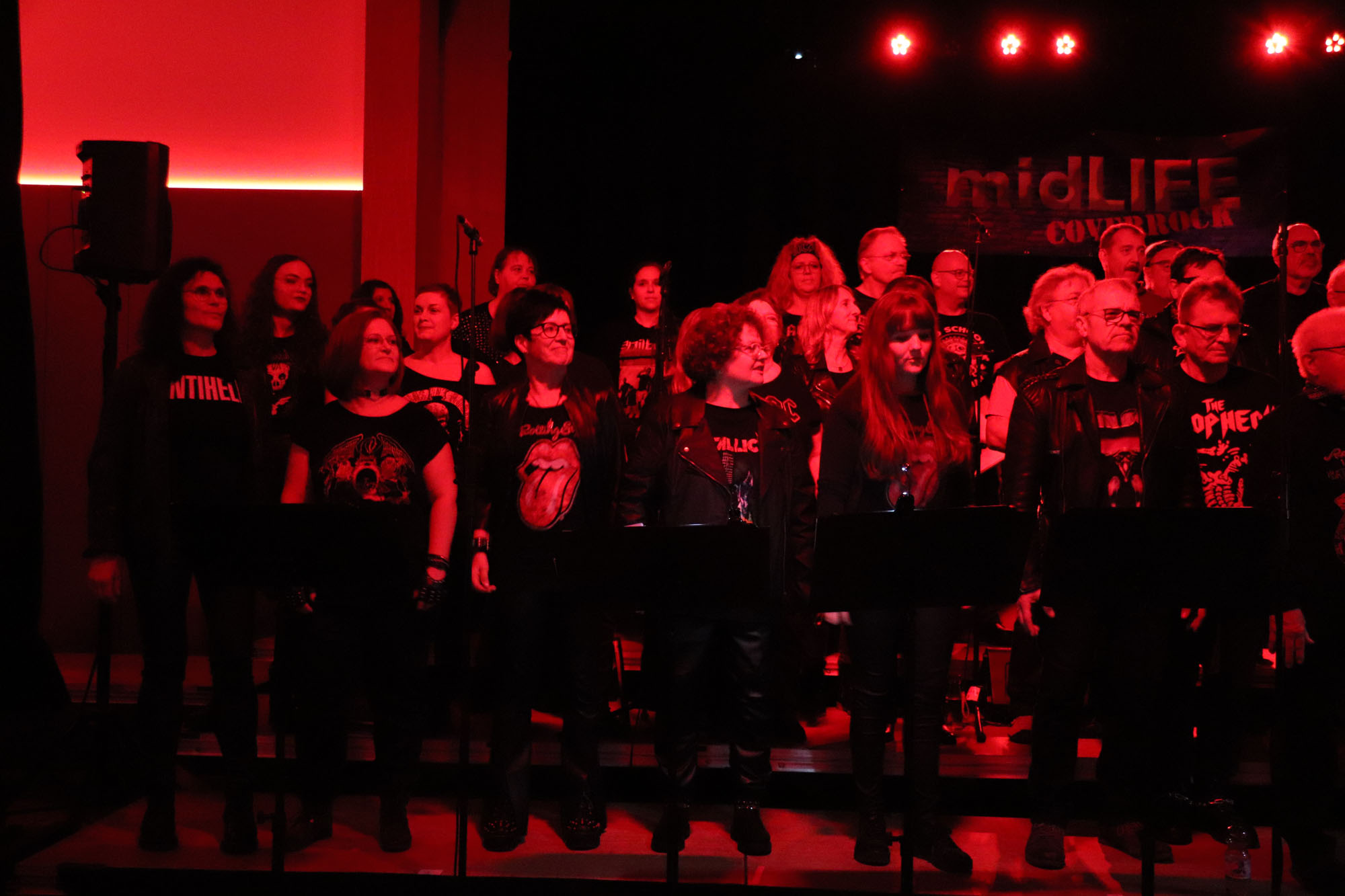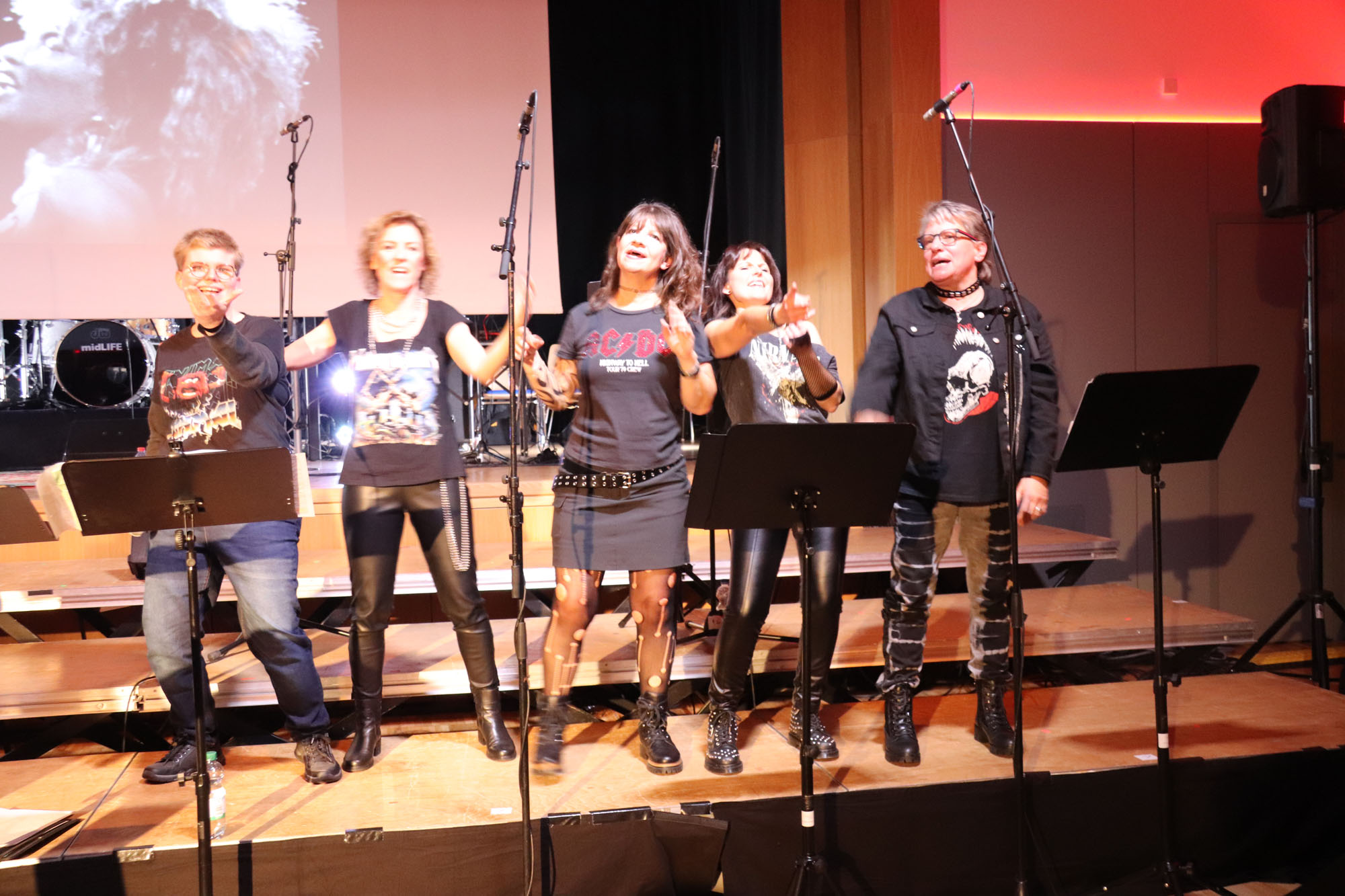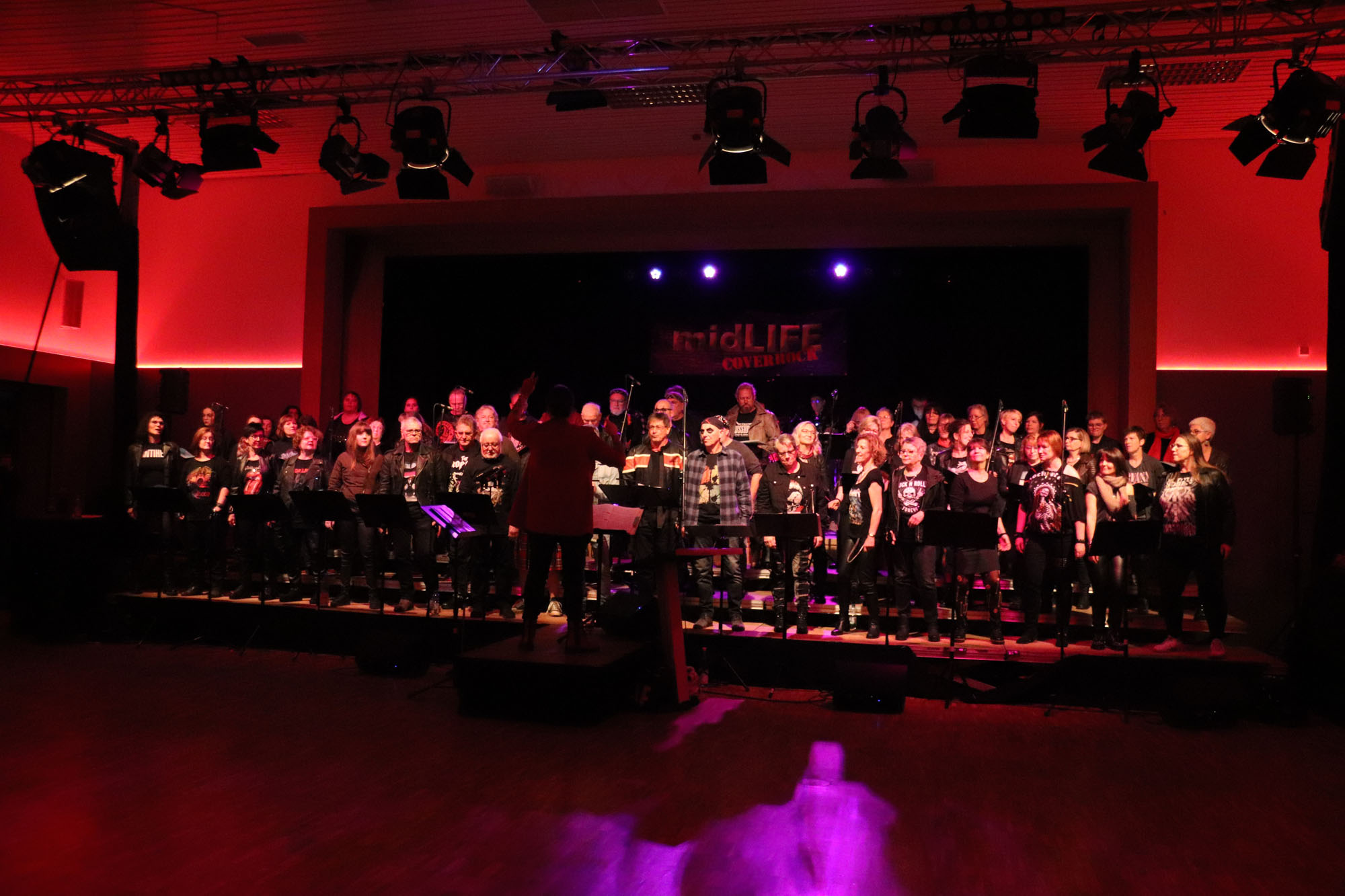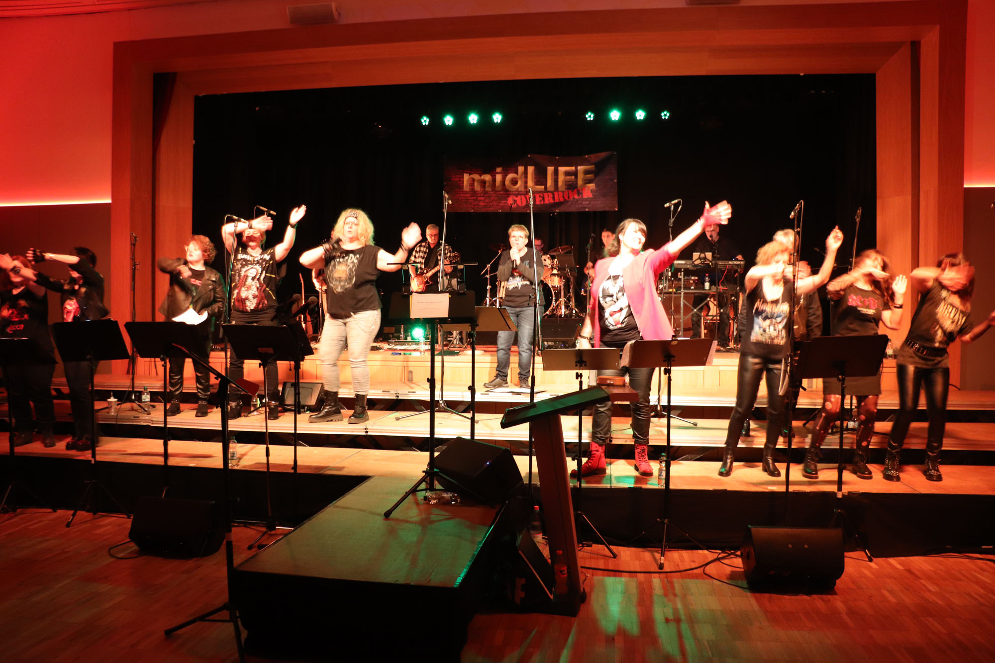 Hier nochmals die nackten Daten: Das Projekt begann am 14.09.23. Es umfasste acht Abendproben sowie zwei Vormittage („Singsamstage“) und natürlich die Generalprobe am Abend vor dem Event. Hier trafen die singenden Akteure erstmals die Musiker der Eppinger Kult-Band „midLIFE“. Die Band und die Chormitglieder studierten an diesem Abend alle drei Songs ein die im Rockkonzert gemeinsam vorgetragen wurden: „Like The Way I Do“ von Melissa Etheridge, „Proud Mary“ von CCR sowie „Verdamp lang her“ von der Kölner Rockgruppe „BAP“. Im Verlauf des Programms am Samstag präsentierten sich folgende Akteure auch als Solistinnen und Solisten: Reinhard Dutzi, Jana Eiselt-Möckel, Marion und Rudi Eyer, Elisabeth Hötzel, Andy Maurer, Christoph Ohles, Silke Pekrun-Spang, Julia Seeger und Ivan Welz. Natürlich übernahm Chorleiterin Nelli Holzki mit ihrer warmen und kräftigen Sopranstimme ebenfalls mehrere Soloparts.