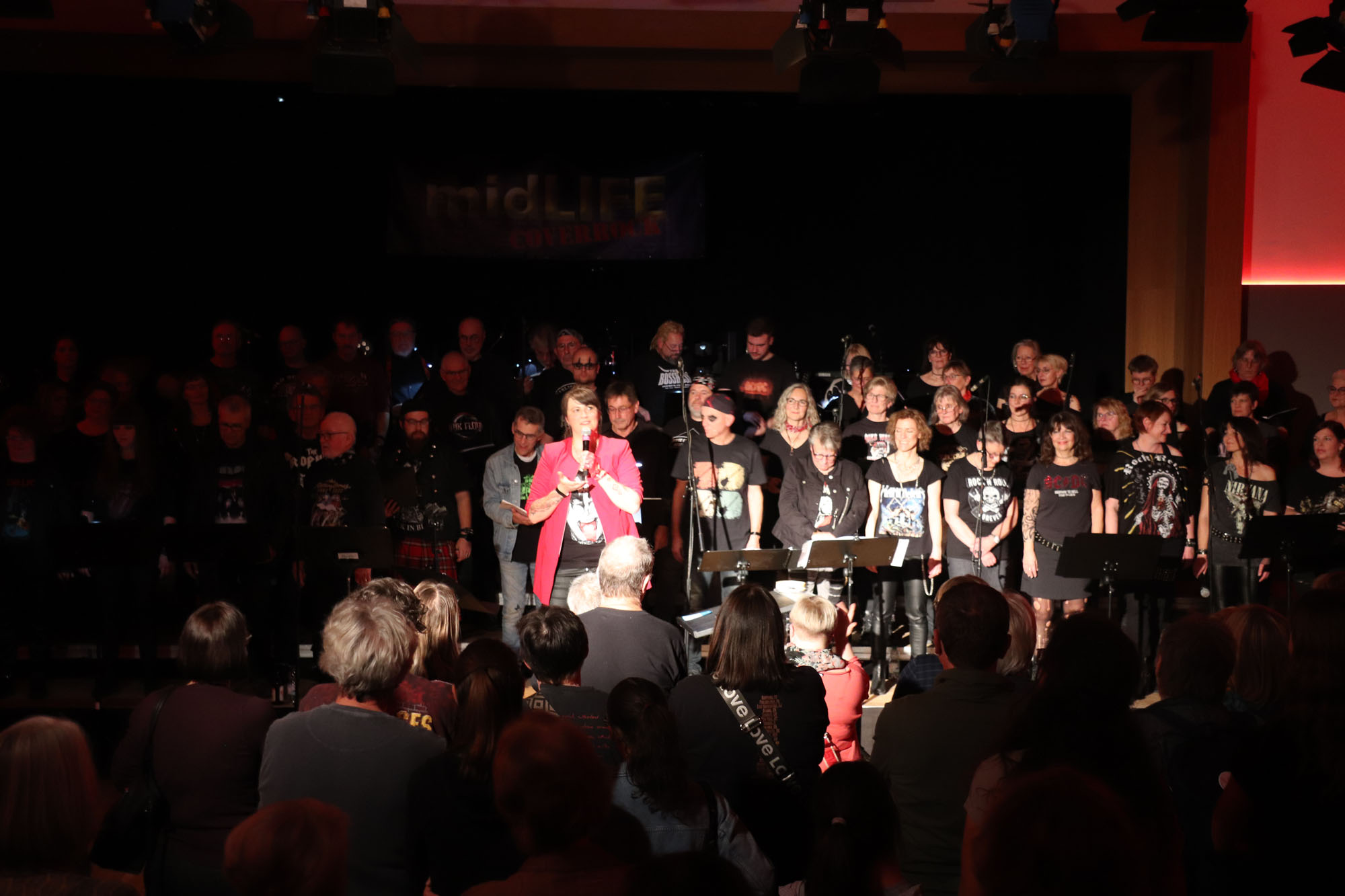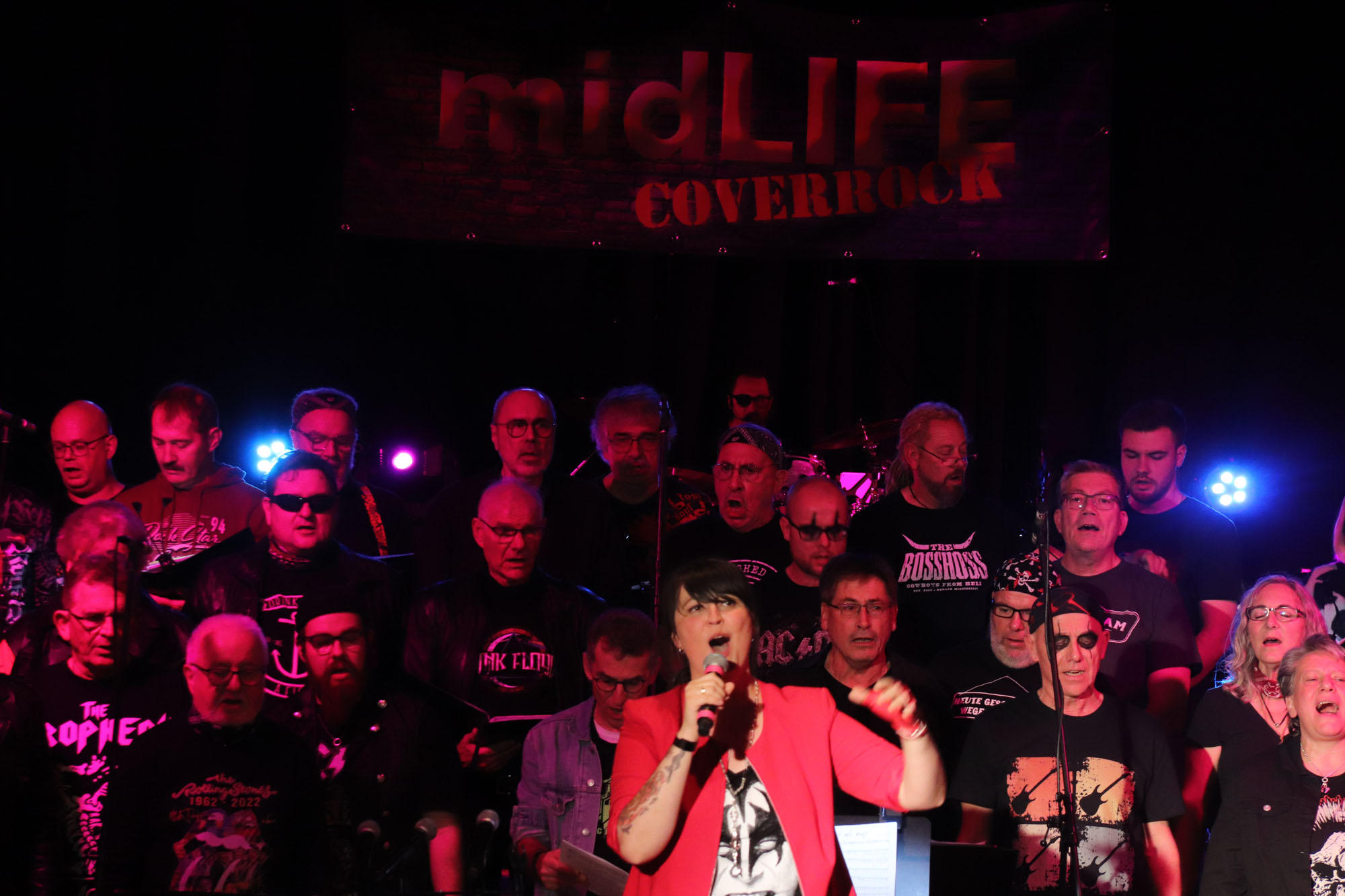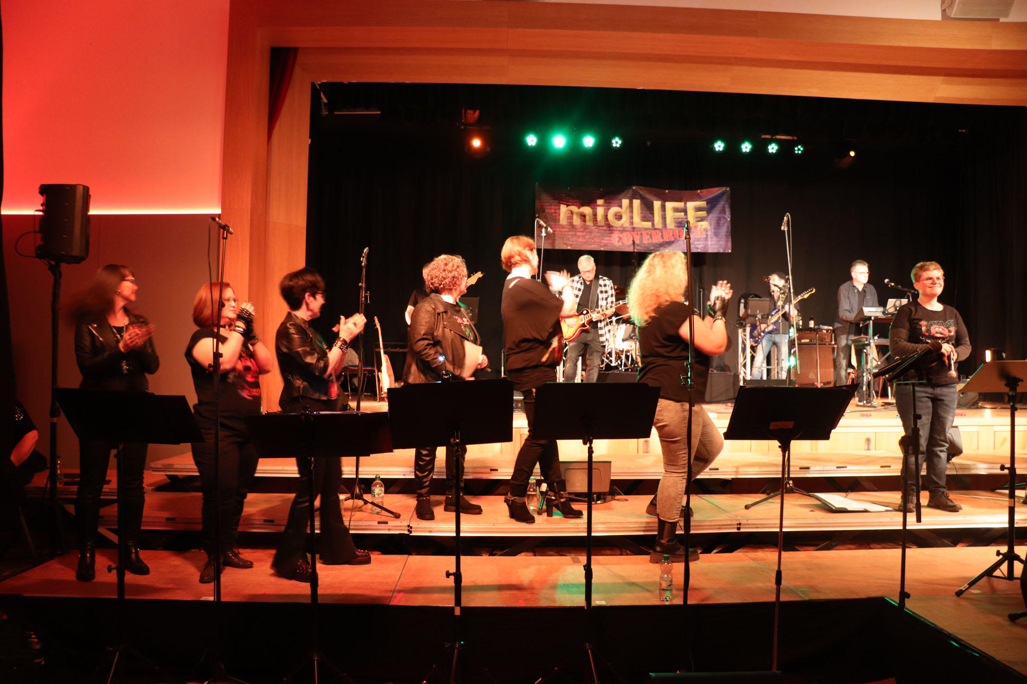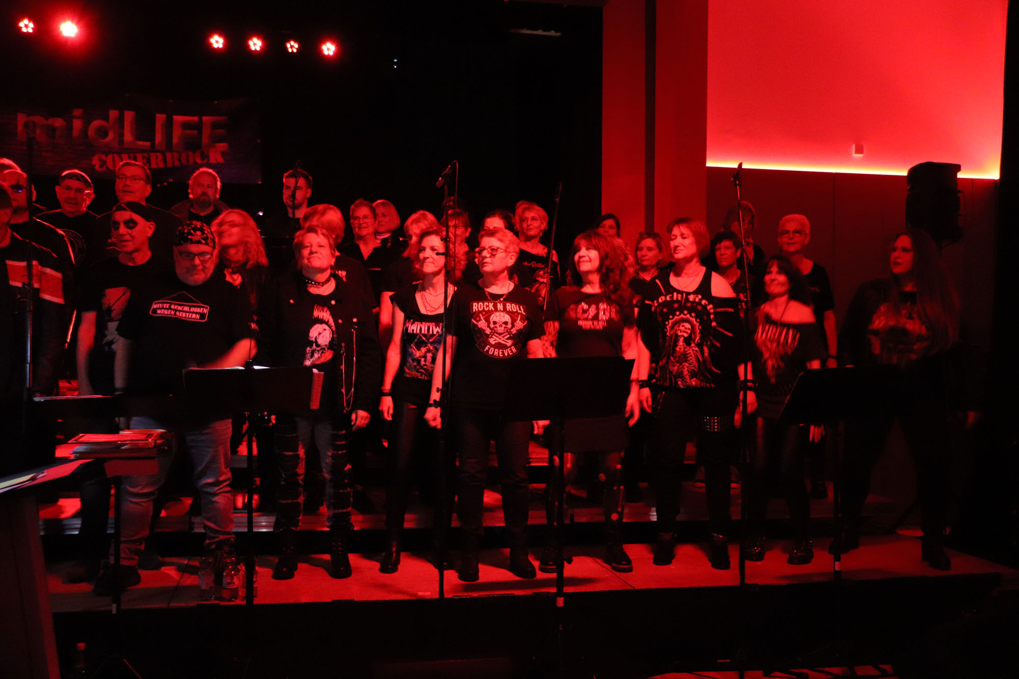 Hier nochmals die nackten Daten: Das Projekt begann am 14.09.23. Es umfasste acht Abendproben sowie zwei Vormittage („Singsamstage“) und natürlich die Generalprobe am Abend vor dem Event. Hier trafen die singenden Akteure erstmals die Musiker der Eppinger Kult-Band „midLIFE“. Die Band und die Chormitglieder studierten an diesem Abend alle drei Songs ein die im Rockkonzert gemeinsam vorgetragen wurden: „Like The Way I Do“ von Melissa Etheridge, „Proud Mary“ von CCR sowie „Verdamp lang her“ von der Kölner Rockgruppe „BAP“. Im Verlauf des Programms am Samstag präsentierten sich folgende Akteure auch als Solistinnen und Solisten: Reinhard Dutzi, Jana Eiselt-Möckel, Marion und Rudi Eyer, Elisabeth Hötzel, Andy Maurer, Christoph Ohles, Silke Pekrun-Spang, Julia Seeger und Ivan Welz. Natürlich übernahm Chorleiterin Nelli Holzki mit ihrer warmen und kräftigen Sopranstimme ebenfalls mehrere Soloparts.