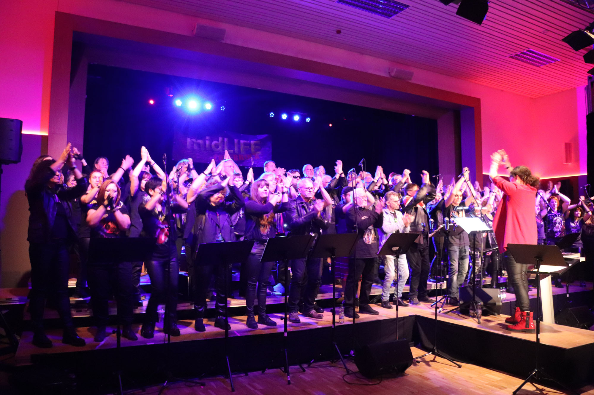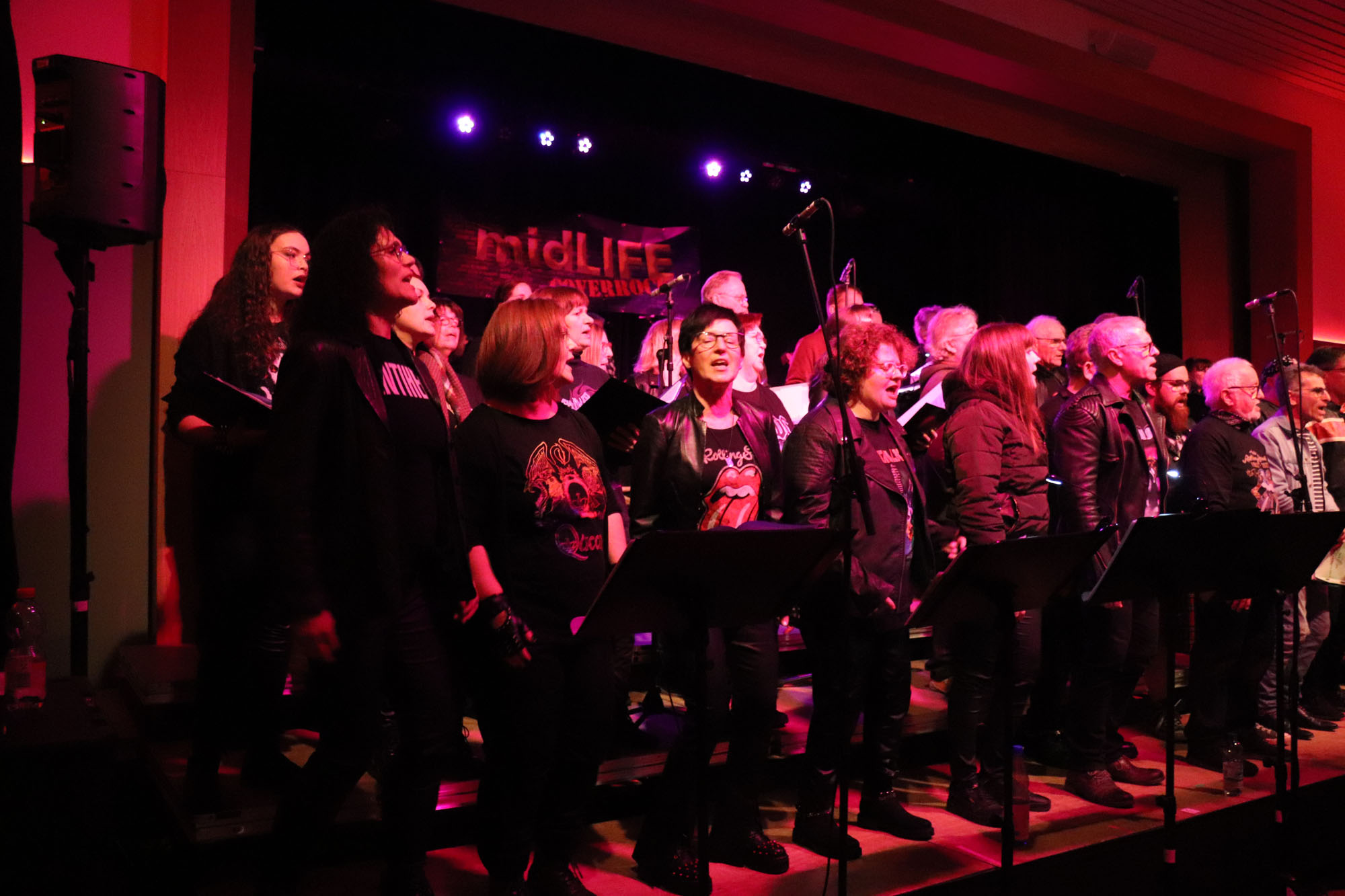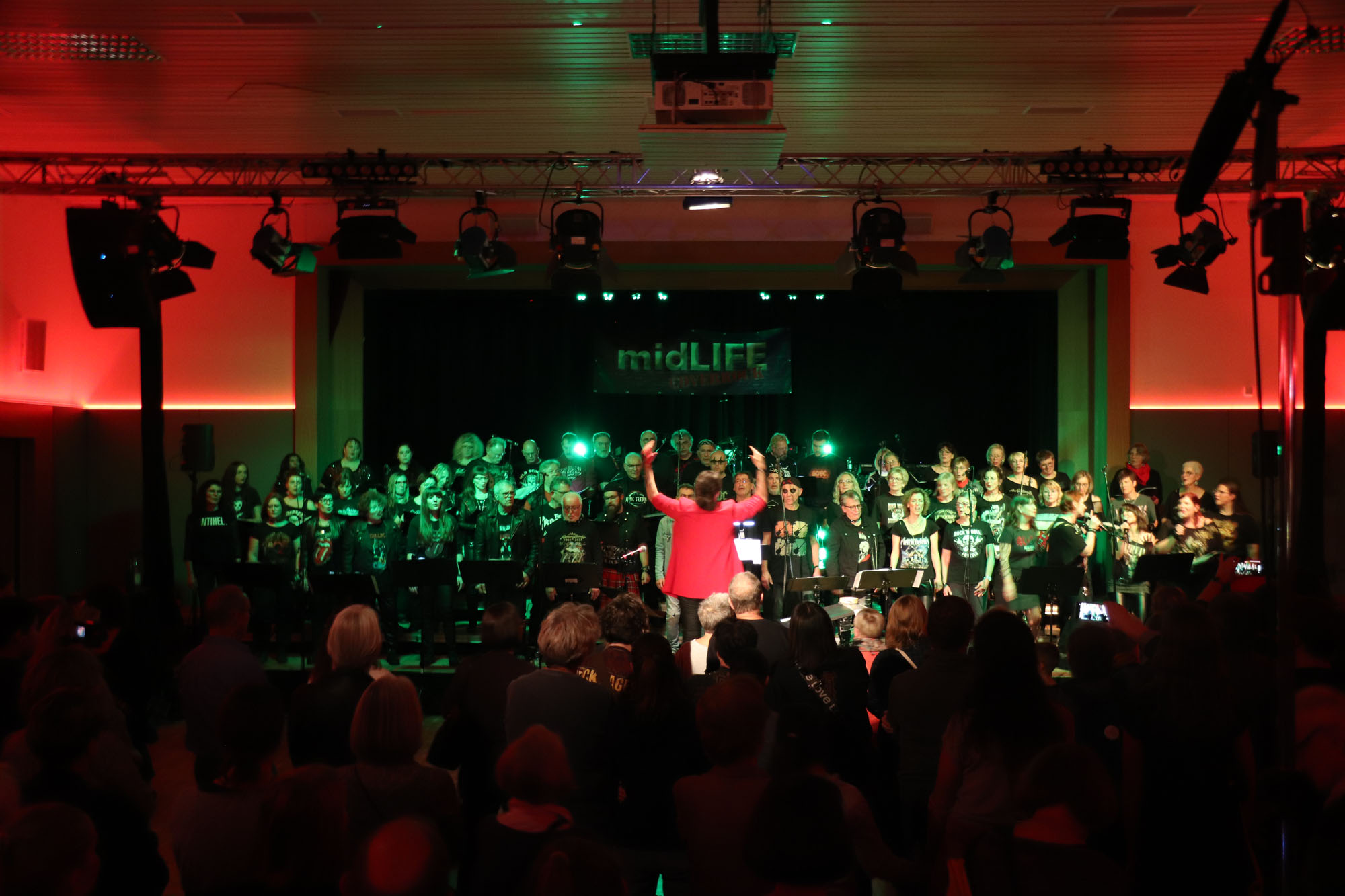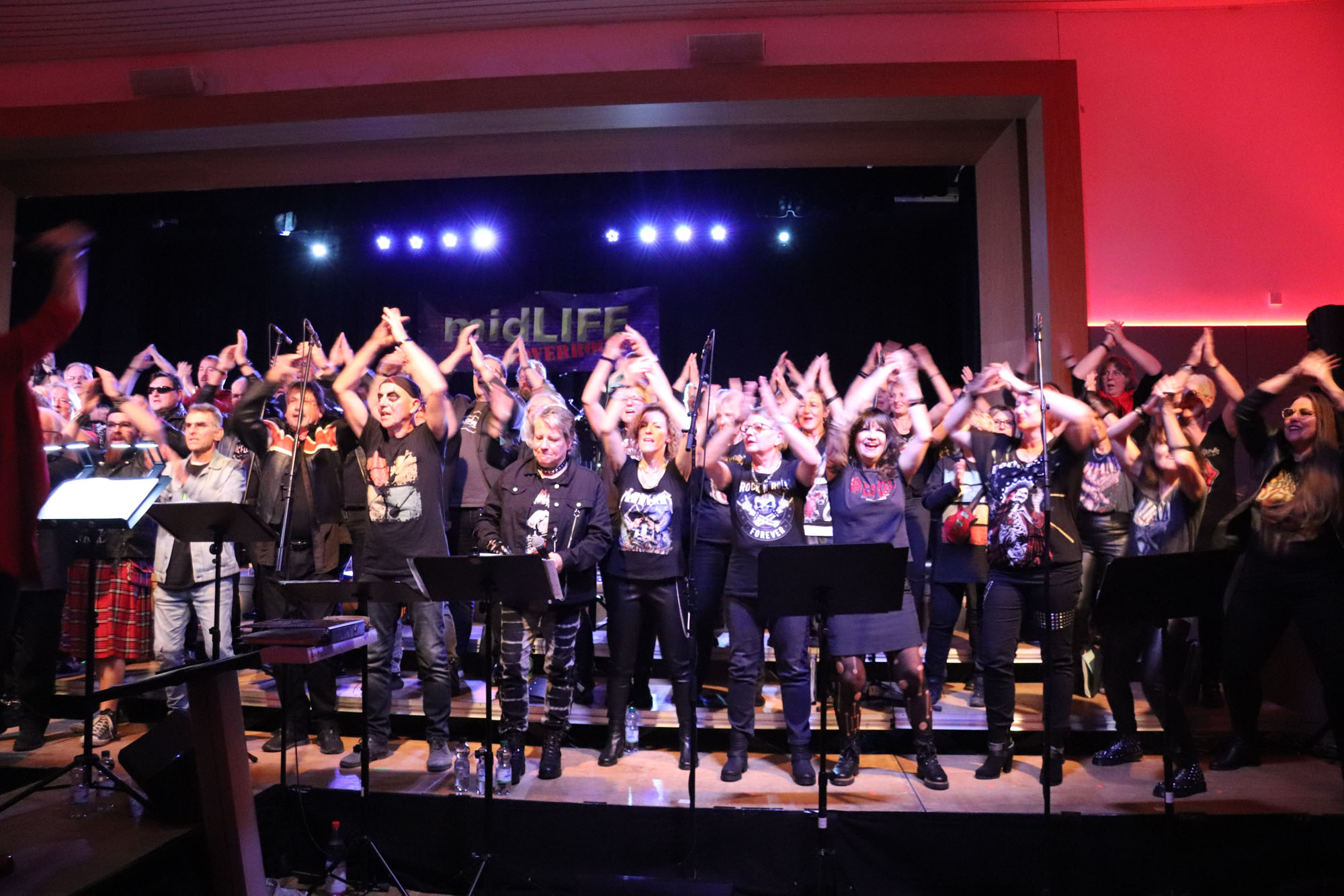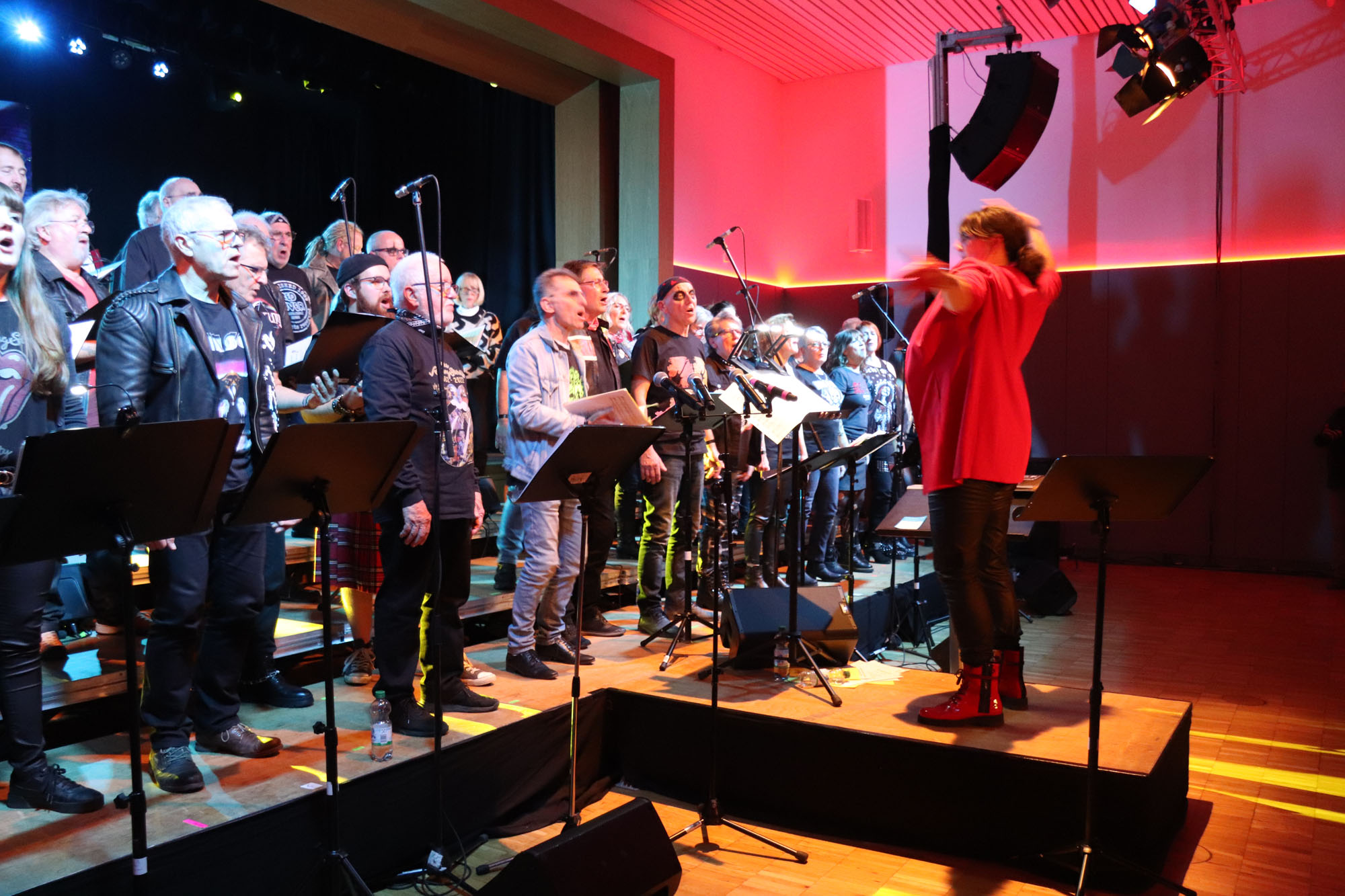 Hier nochmals die nackten Daten: Das Projekt begann am 14.09.23. Es umfasste acht Abendproben sowie zwei Vormittage („Singsamstage“) und natürlich die Generalprobe am Abend vor dem Event. Hier trafen die singenden Akteure erstmals die Musiker der Eppinger Kult-Band „midLIFE“. Die Band und die Chormitglieder studierten an diesem Abend alle drei Songs ein die im Rockkonzert gemeinsam vorgetragen wurden: „Like The Way I Do“ von Melissa Etheridge, „Proud Mary“ von CCR sowie „Verdamp lang her“ von der Kölner Rockgruppe „BAP“. Im Verlauf des Programms am Samstag präsentierten sich folgende Akteure auch als Solistinnen und Solisten: Reinhard Dutzi, Jana Eiselt-Möckel, Marion und Rudi Eyer, Elisabeth Hötzel, Andy Maurer, Christoph Ohles, Silke Pekrun-Spang, Julia Seeger und Ivan Welz. Natürlich übernahm Chorleiterin Nelli Holzki mit ihrer warmen und kräftigen Sopranstimme ebenfalls mehrere Soloparts.