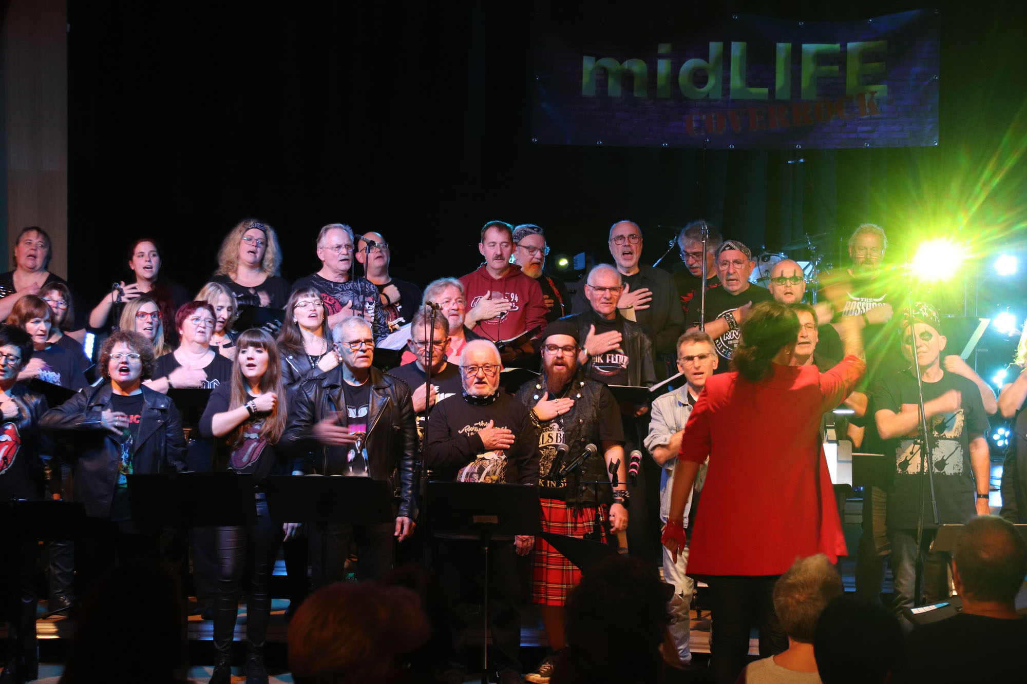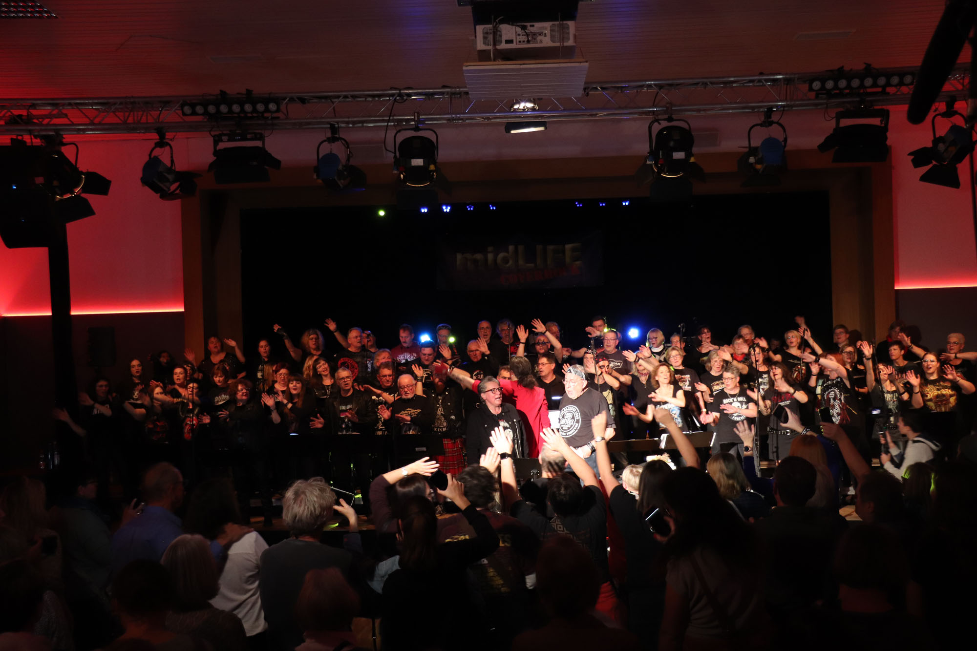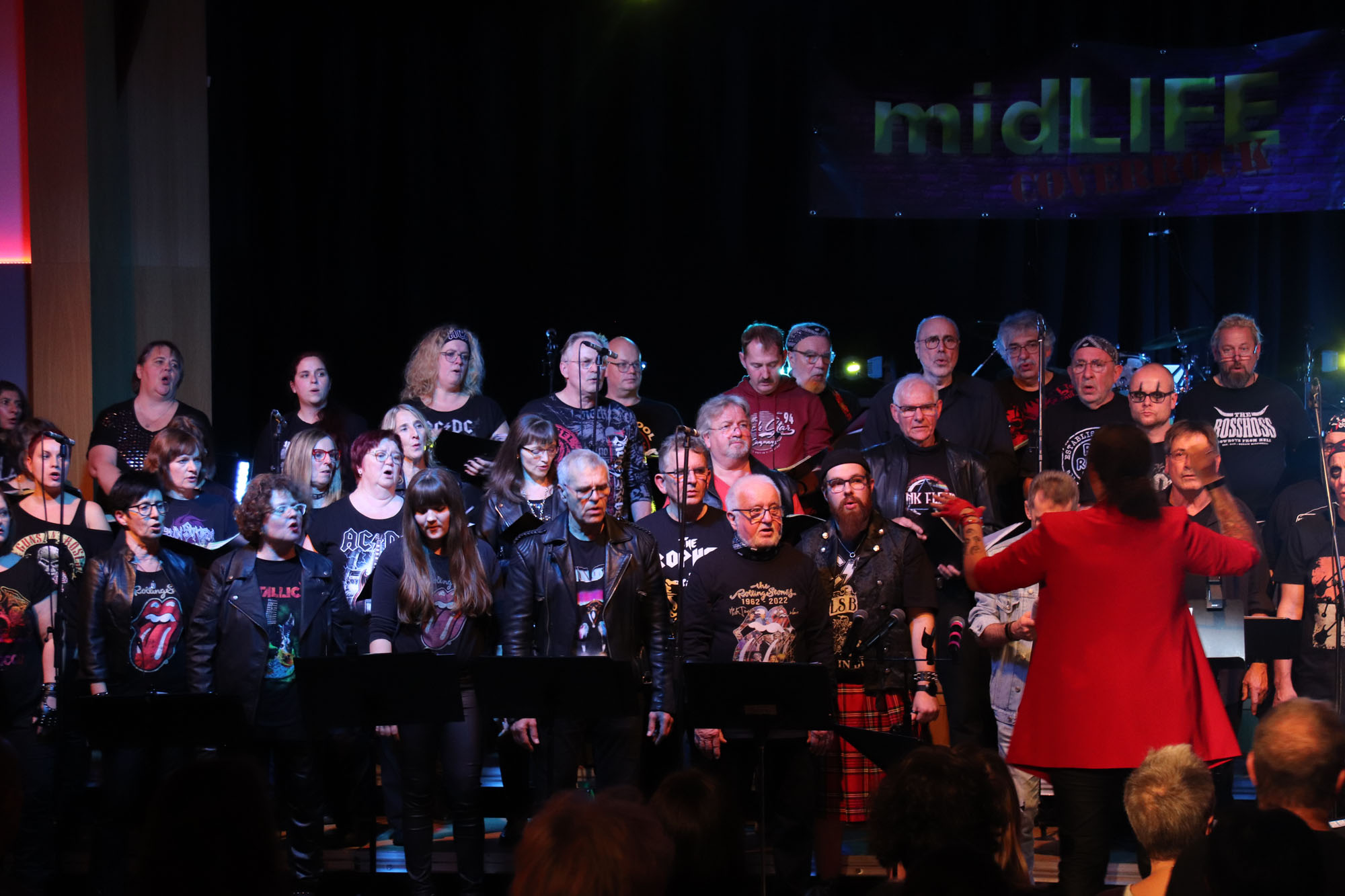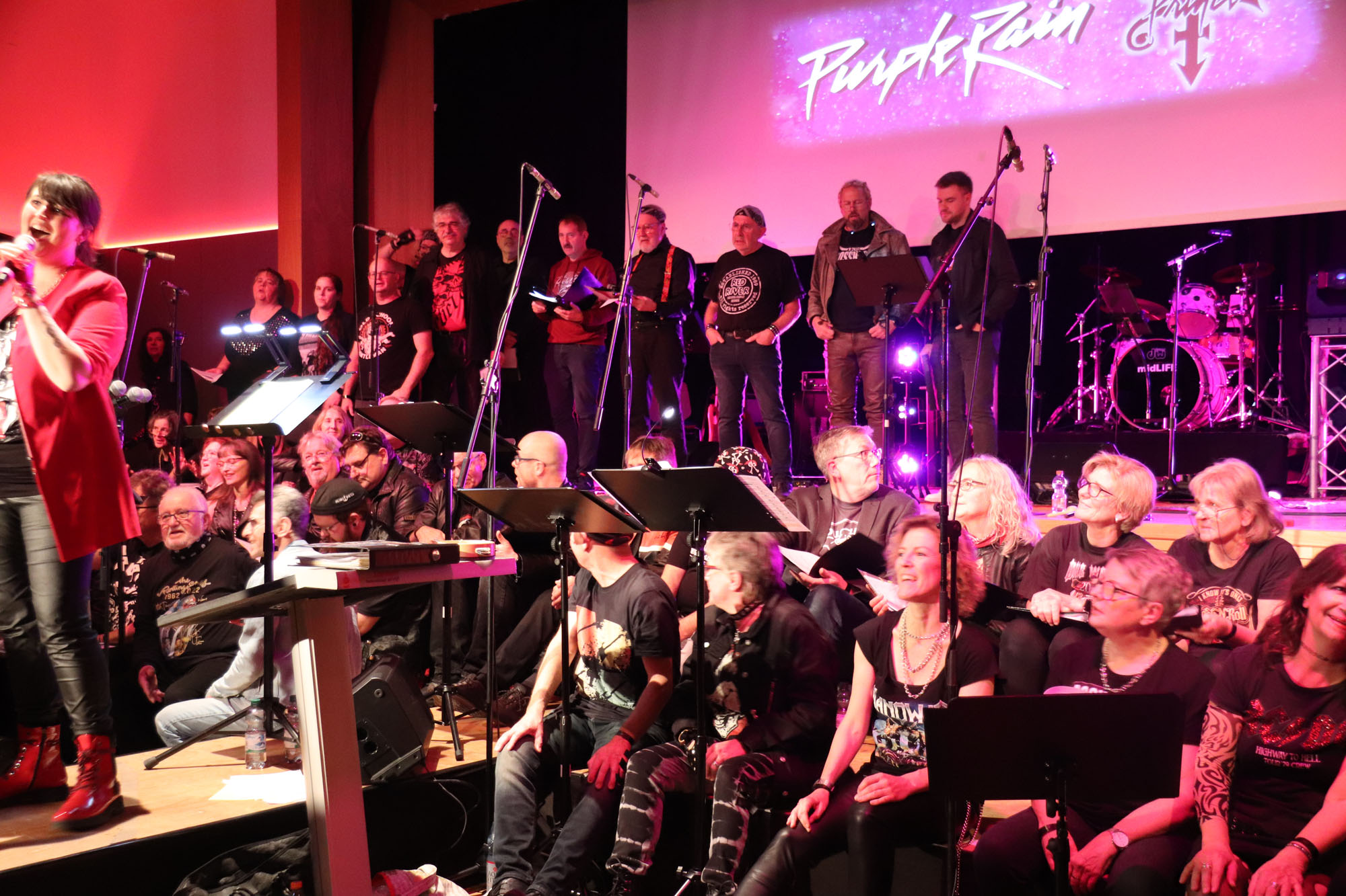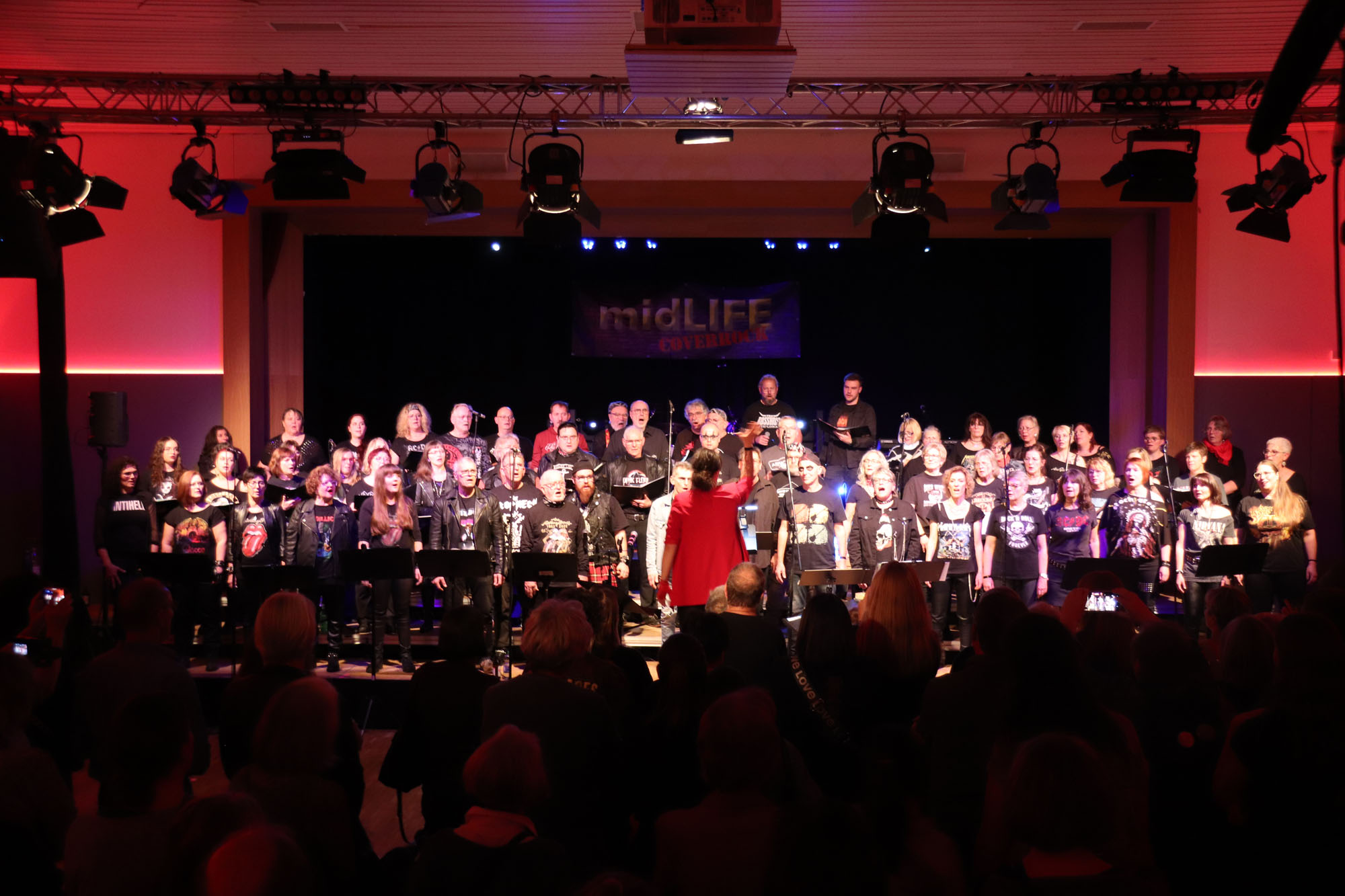 Hier nochmals die nackten Daten: Das Projekt begann am 14.09.23. Es umfasste acht Abendproben sowie zwei Vormittage („Singsamstage“) und natürlich die Generalprobe am Abend vor dem Event. Hier trafen die singenden Akteure erstmals die Musiker der Eppinger Kult-Band „midLIFE“. Die Band und die Chormitglieder studierten an diesem Abend alle drei Songs ein die im Rockkonzert gemeinsam vorgetragen wurden: „Like The Way I Do“ von Melissa Etheridge, „Proud Mary“ von CCR sowie „Verdamp lang her“ von der Kölner Rockgruppe „BAP“. Im Verlauf des Programms am Samstag präsentierten sich folgende Akteure auch als Solistinnen und Solisten: Reinhard Dutzi, Jana Eiselt-Möckel, Marion und Rudi Eyer, Elisabeth Hötzel, Andy Maurer, Christoph Ohles, Silke Pekrun-Spang, Julia Seeger und Ivan Welz. Natürlich übernahm Chorleiterin Nelli Holzki mit ihrer warmen und kräftigen Sopranstimme ebenfalls mehrere Soloparts.