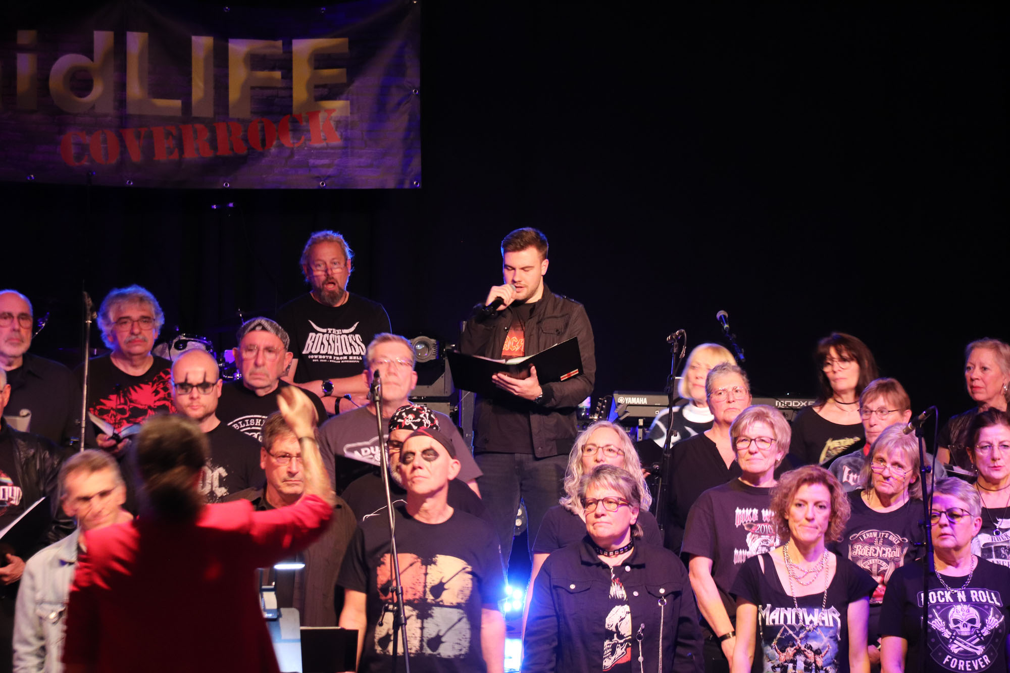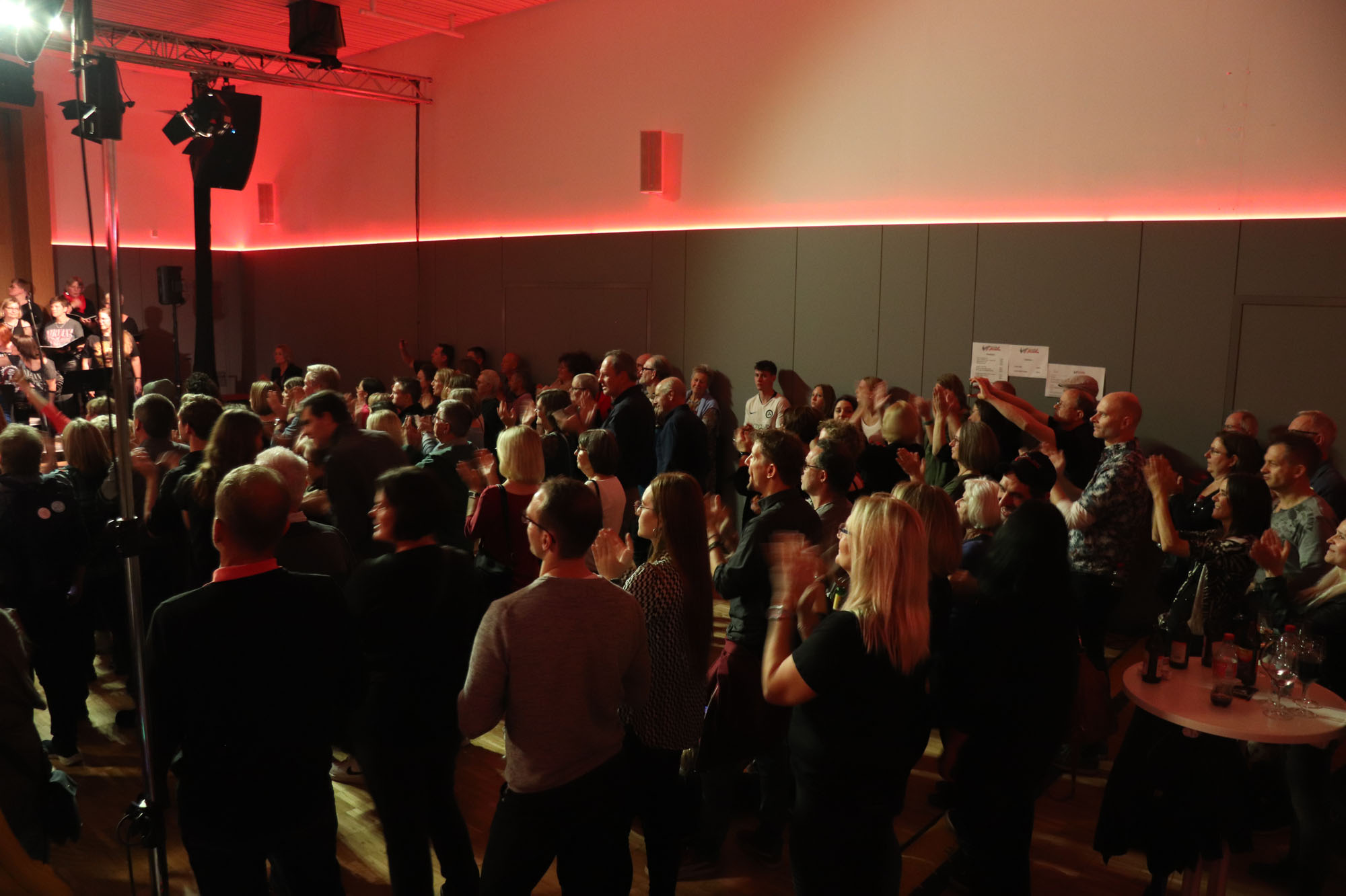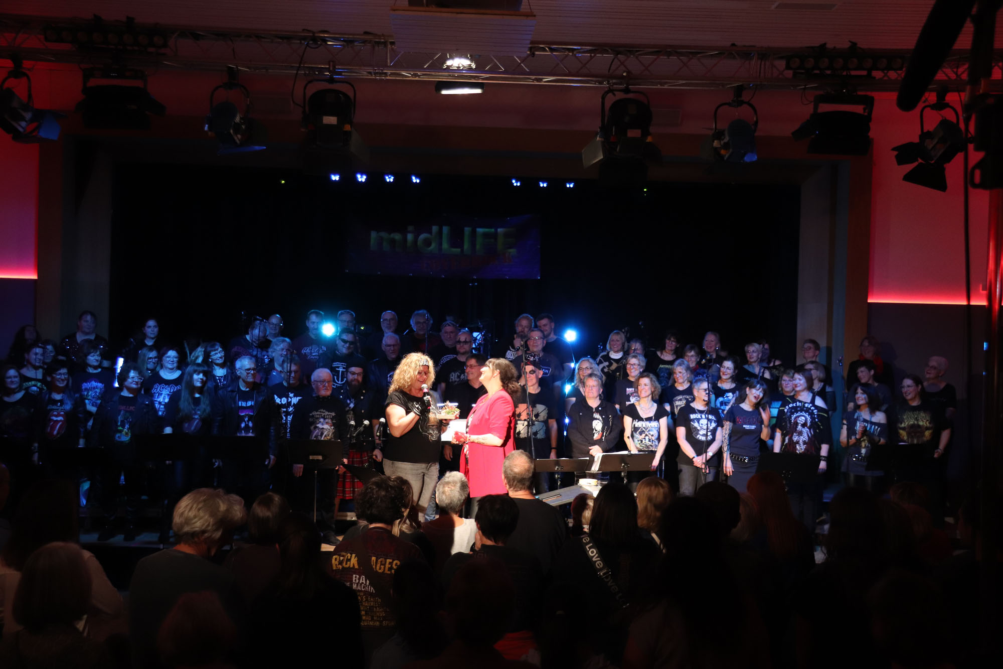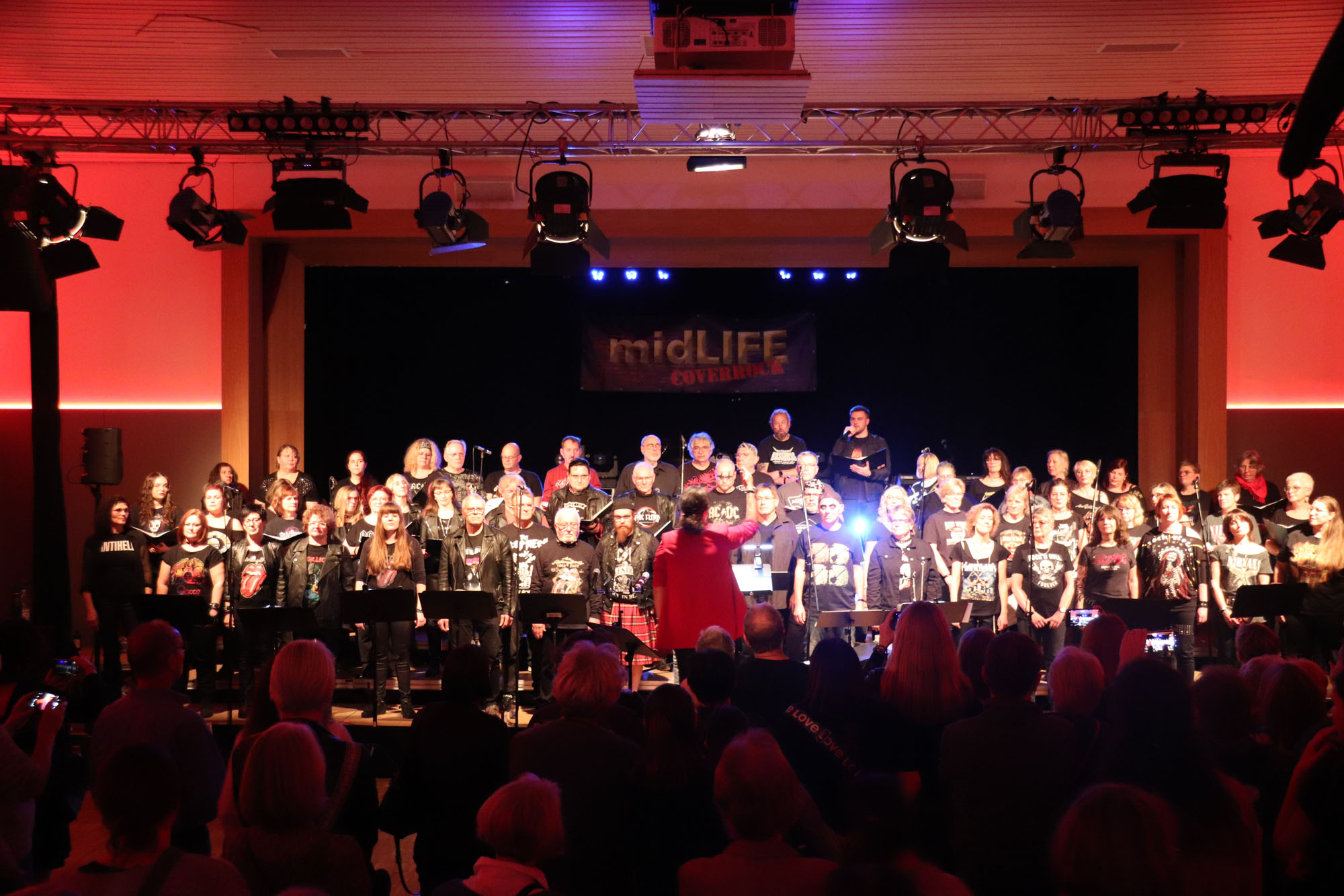 Hier nochmals die nackten Daten: Das Projekt begann am 14.09.23. Es umfasste acht Abendproben sowie zwei Vormittage („Singsamstage“) und natürlich die Generalprobe am Abend vor dem Event. Hier trafen die singenden Akteure erstmals die Musiker der Eppinger Kult-Band „midLIFE“. Die Band und die Chormitglieder studierten an diesem Abend alle drei Songs ein die im Rockkonzert gemeinsam vorgetragen wurden: „Like The Way I Do“ von Melissa Etheridge, „Proud Mary“ von CCR sowie „Verdamp lang her“ von der Kölner Rockgruppe „BAP“. Im Verlauf des Programms am Samstag präsentierten sich folgende Akteure auch als Solistinnen und Solisten: Reinhard Dutzi, Jana Eiselt-Möckel, Marion und Rudi Eyer, Elisabeth Hötzel, Andy Maurer, Christoph Ohles, Silke Pekrun-Spang, Julia Seeger und Ivan Welz. Natürlich übernahm Chorleiterin Nelli Holzki mit ihrer warmen und kräftigen Sopranstimme ebenfalls mehrere Soloparts.
