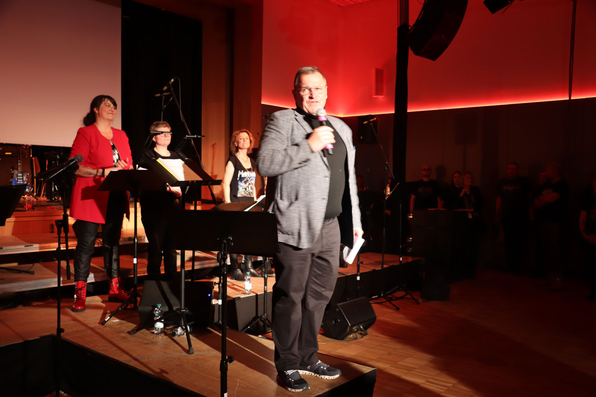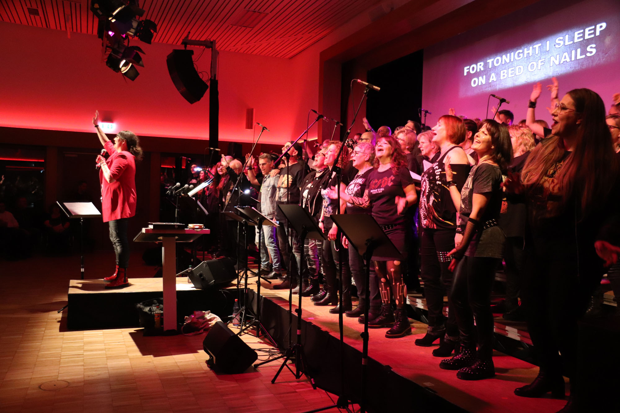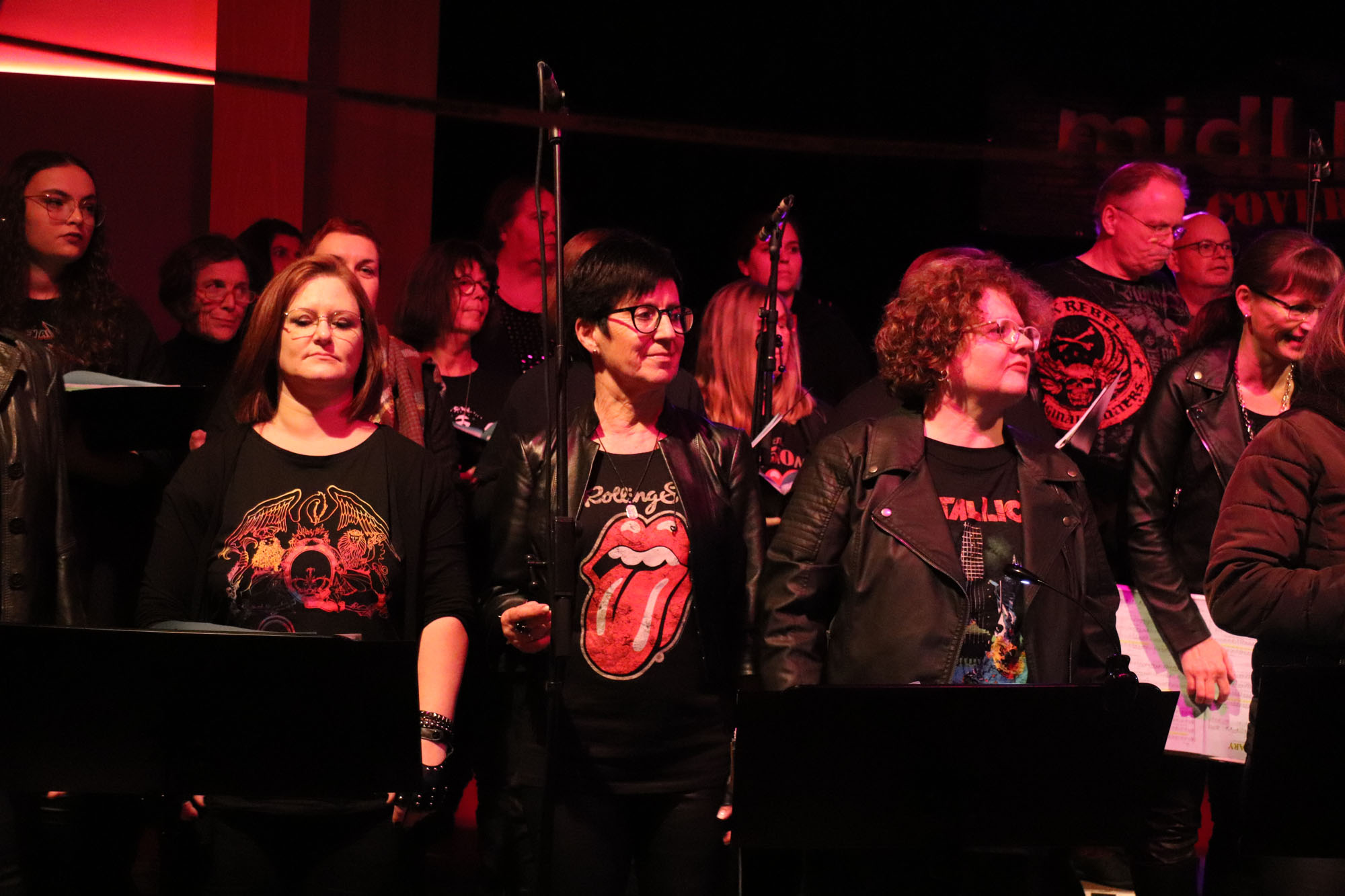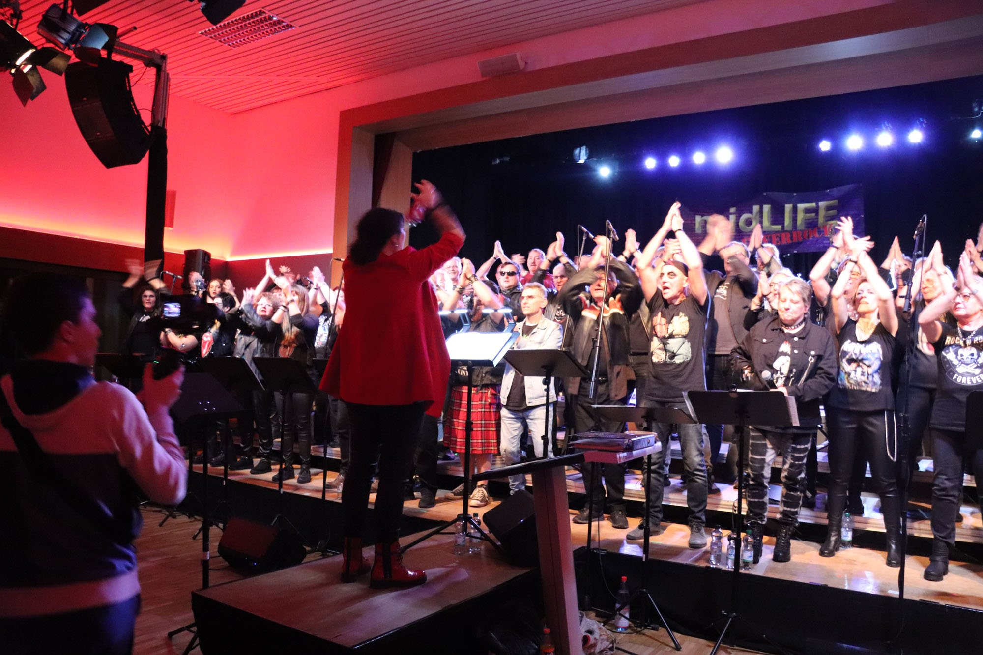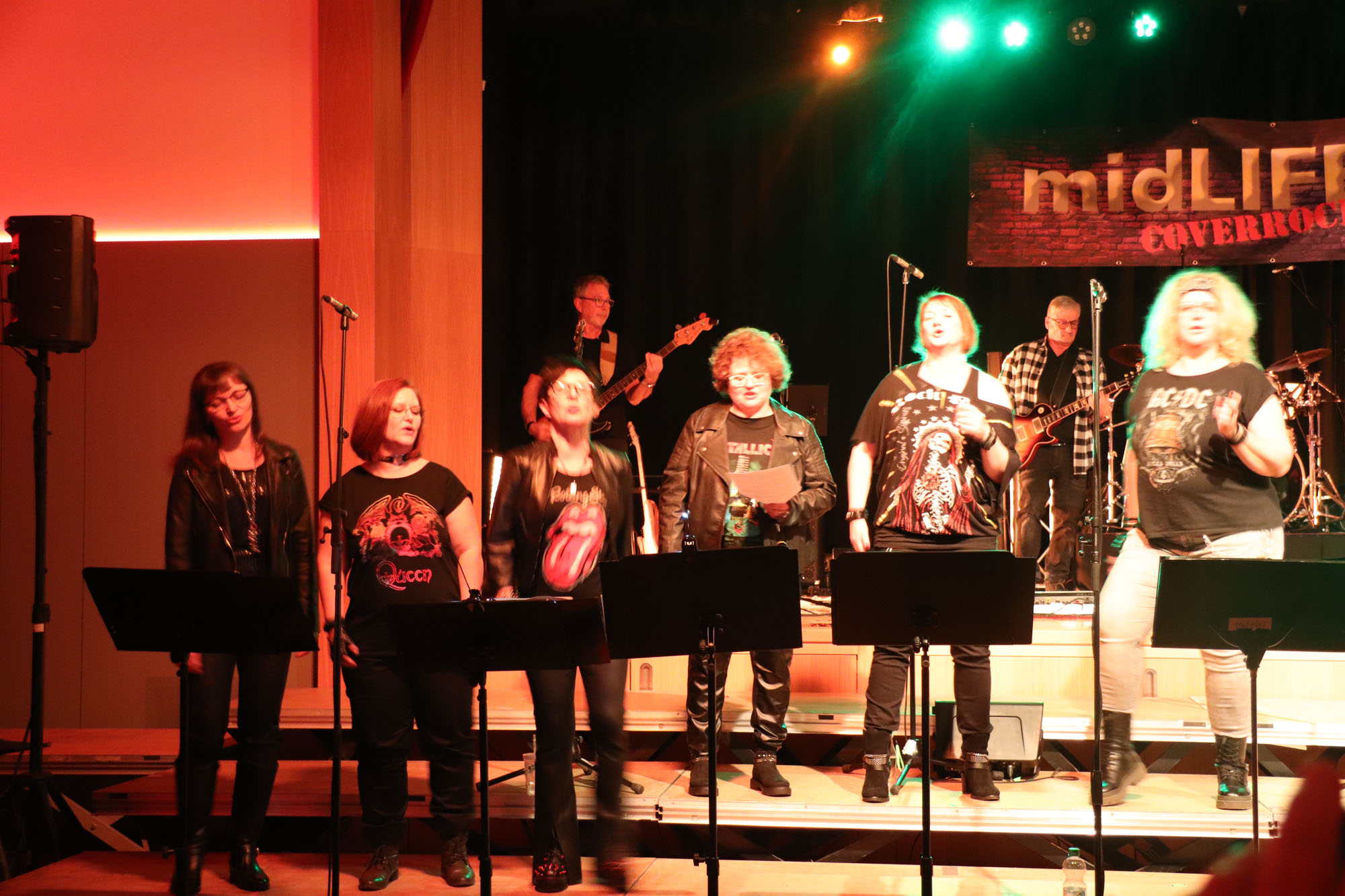Hier nochmals die nackten Daten: Das Projekt begann am 14.09.23. Es umfasste acht Abendproben sowie zwei Vormittage („Singsamstage“) und natürlich die Generalprobe am Abend vor dem Event. Hier trafen die singenden Akteure erstmals die Musiker der Eppinger Kult-Band „midLIFE“. Die Band und die Chormitglieder studierten an diesem Abend alle drei Songs ein die im Rockkonzert gemeinsam vorgetragen wurden: „Like The Way I Do“ von Melissa Etheridge, „Proud Mary“ von CCR sowie „Verdamp lang her“ von der Kölner Rockgruppe „BAP“. Im Verlauf des Programms am Samstag präsentierten sich folgende Akteure auch als Solistinnen und Solisten: Reinhard Dutzi, Jana Eiselt-Möckel, Marion und Rudi Eyer, Elisabeth Hötzel, Andy Maurer, Christoph Ohles, Silke Pekrun-Spang, Julia Seeger und Ivan Welz. Natürlich übernahm Chorleiterin Nelli Holzki mit ihrer warmen und kräftigen Sopranstimme ebenfalls mehrere Soloparts.