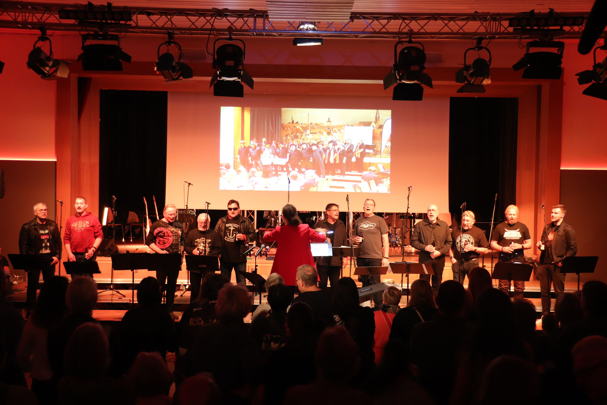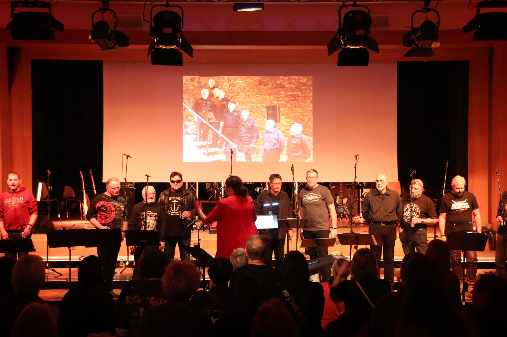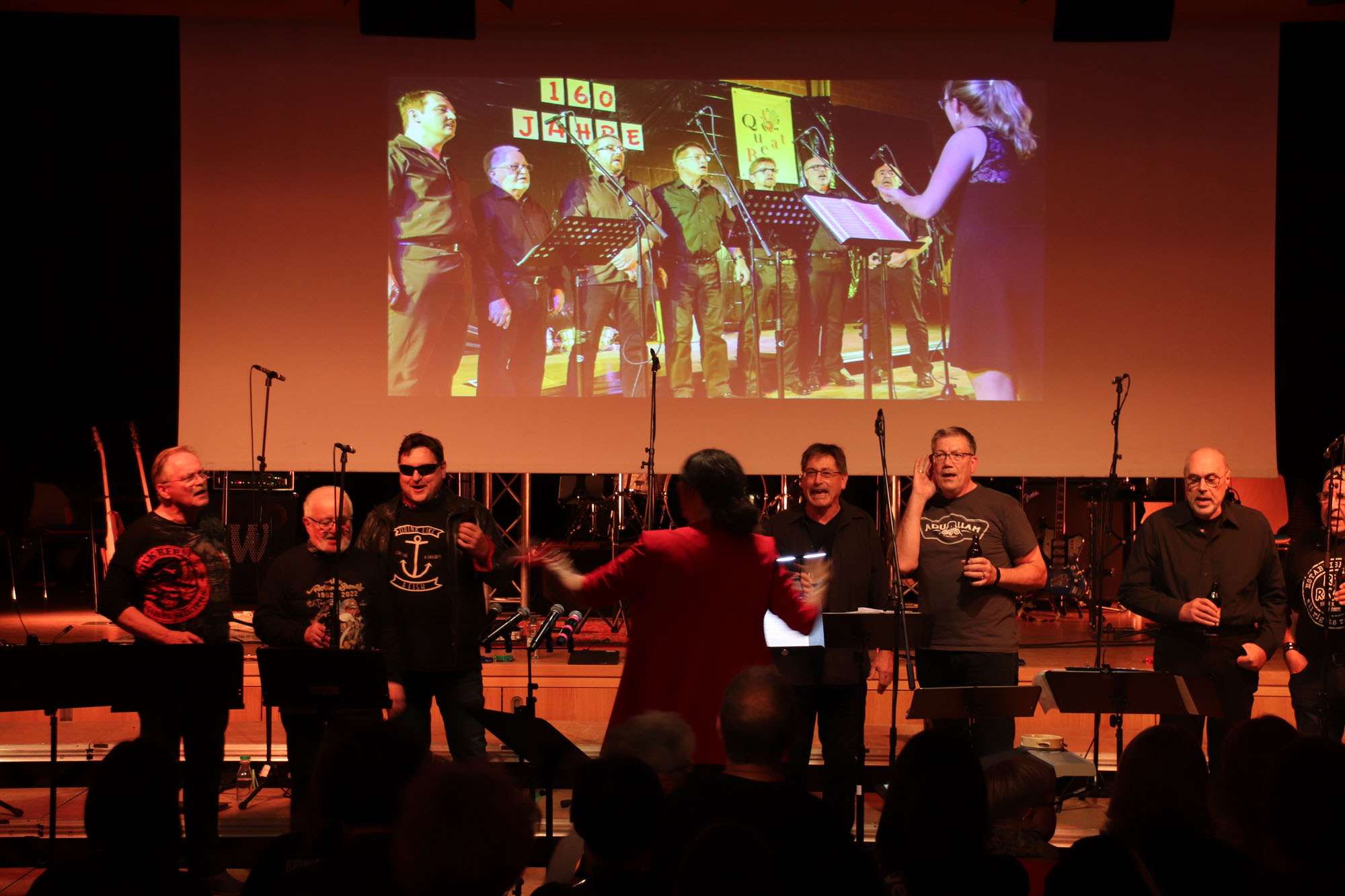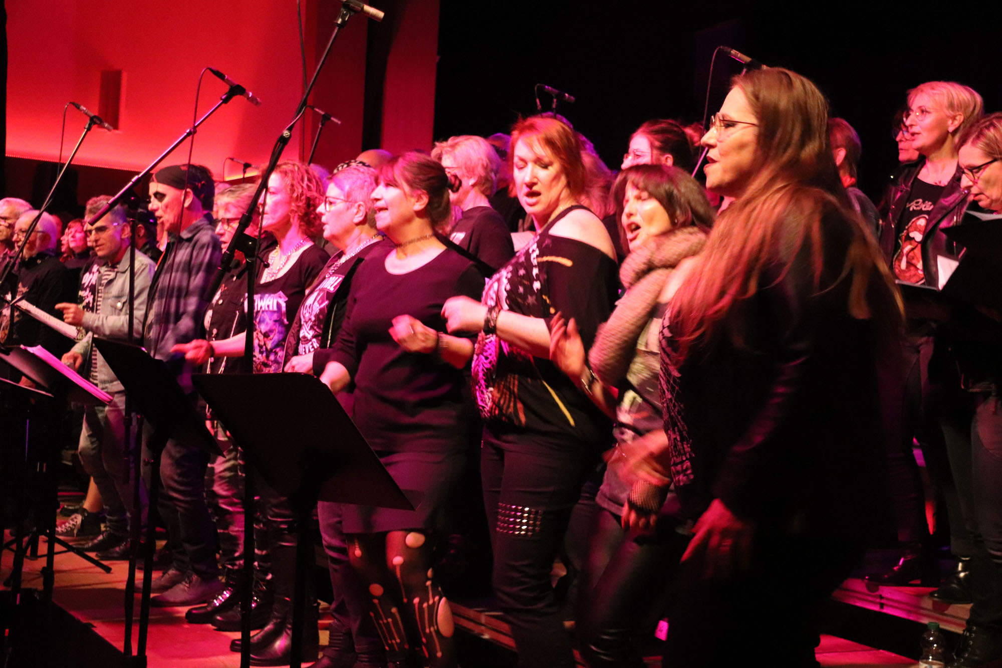 Das gemeinsame Rockkonzert war ein Mega-Erfolg für den GVE. In dieser Bewertung stimmten alle Besucherinnen und Besucher der ausverkauften Veranstaltung überein. Dabei waren im Vorfeld zugegebenermaßen nicht alle Chormitglieder so euphorisch wie Dirigentin Nelli Holzki, als sie das Vorhaben erstmals vorschlug. Schließlich galt es, mit Rockmusik und Chorgesang zwei musikalische Richtungen unter einen Hut zu bringen, die auf den ersten Blick nur schwer vereinbar sind.