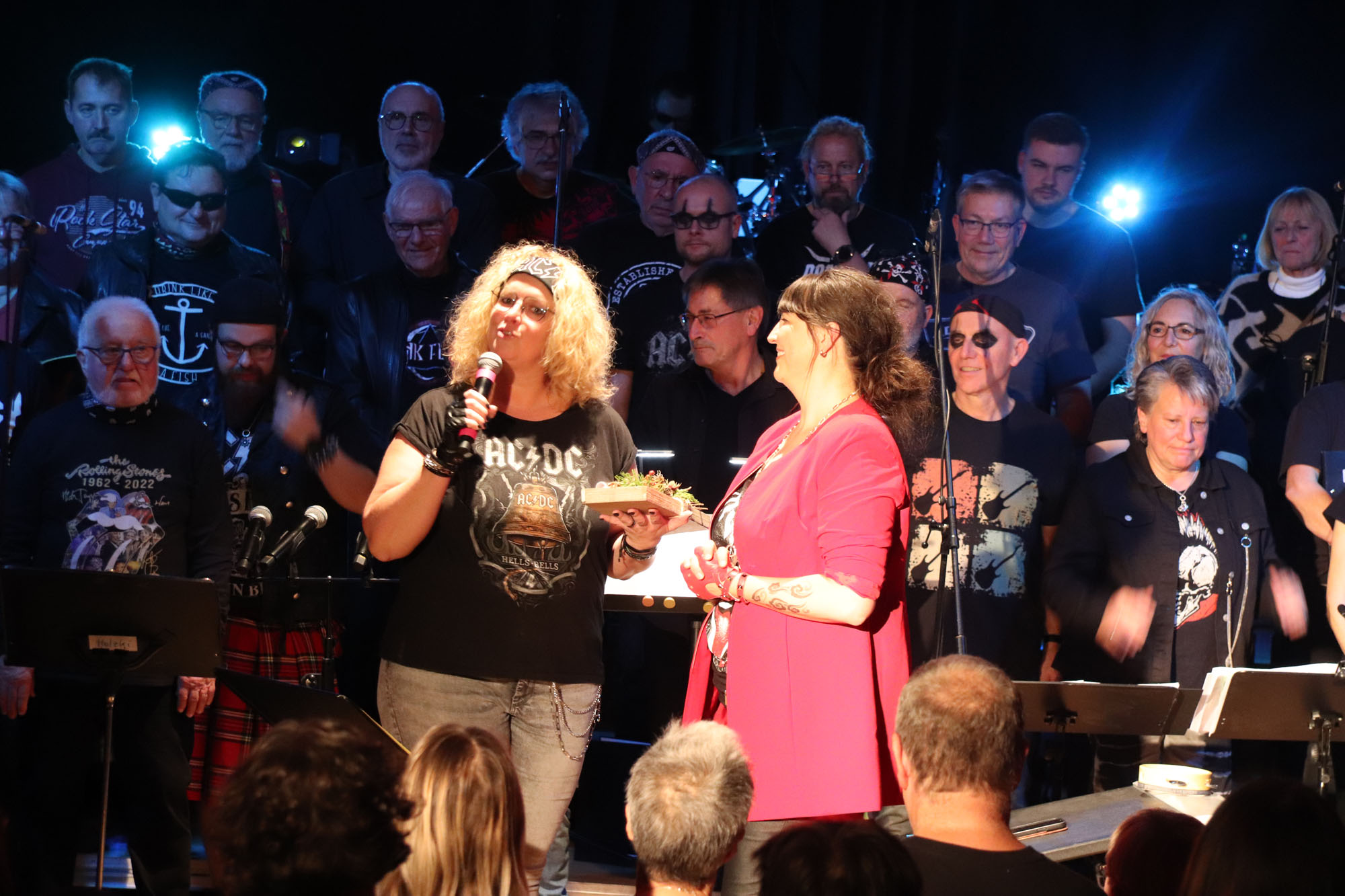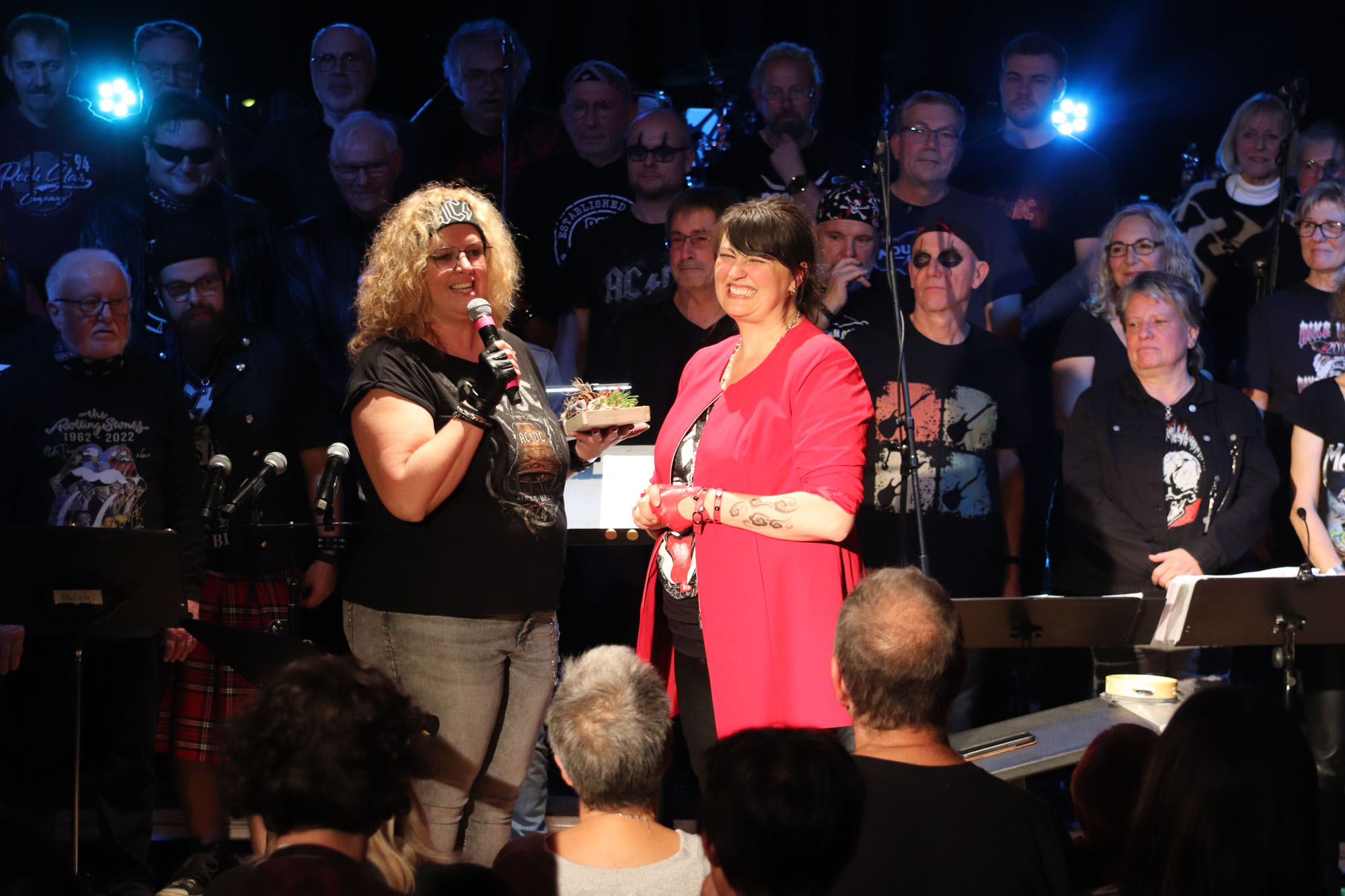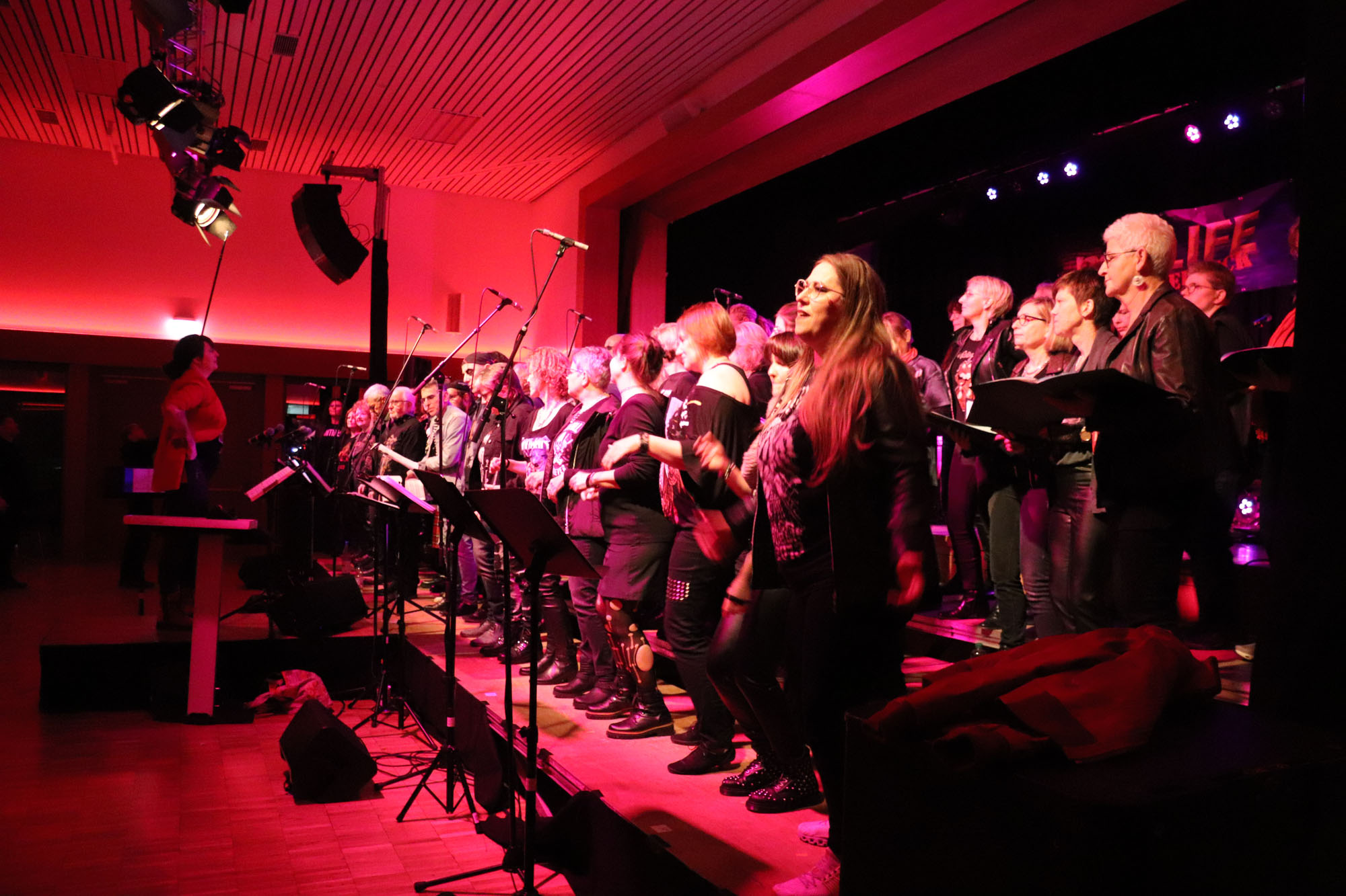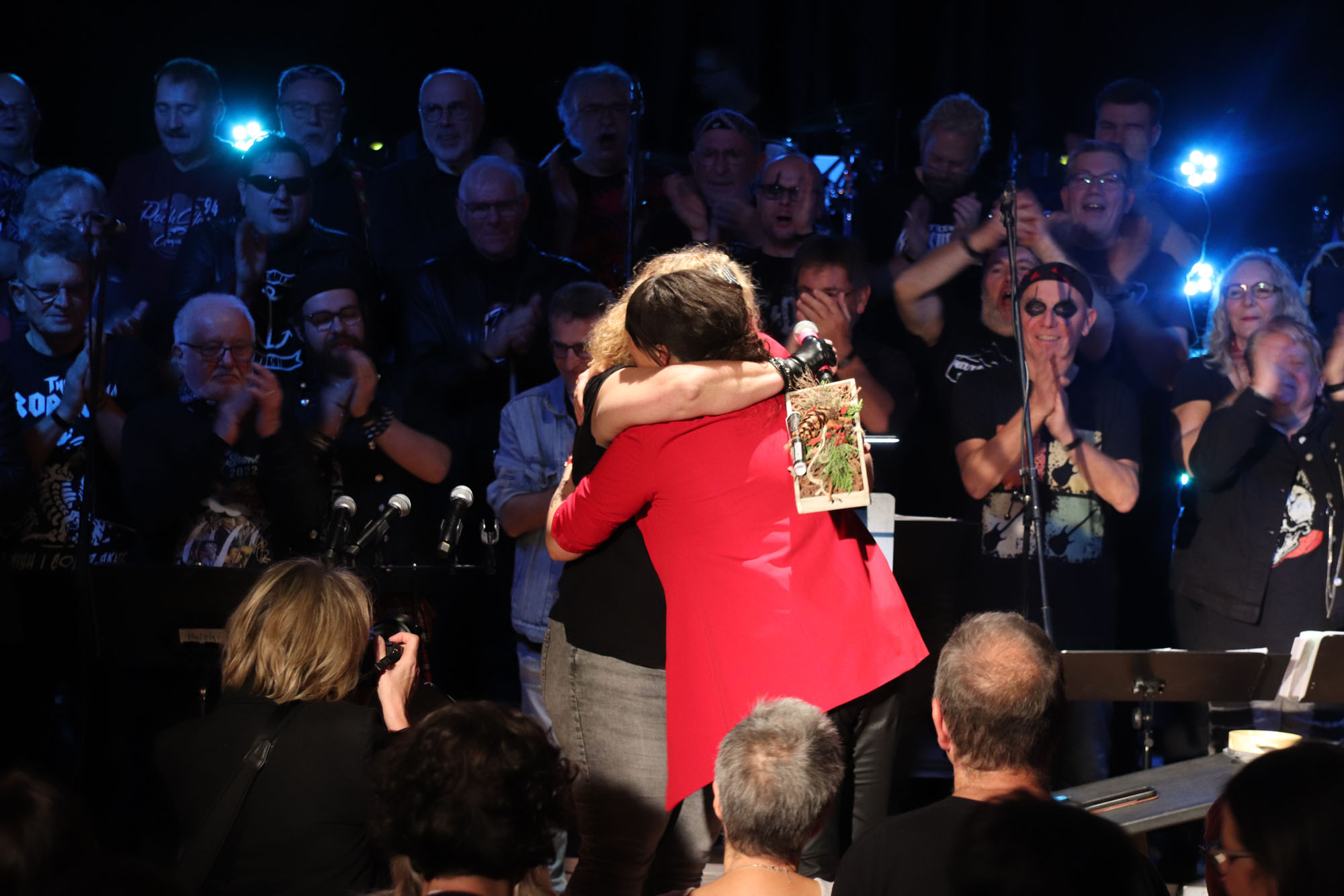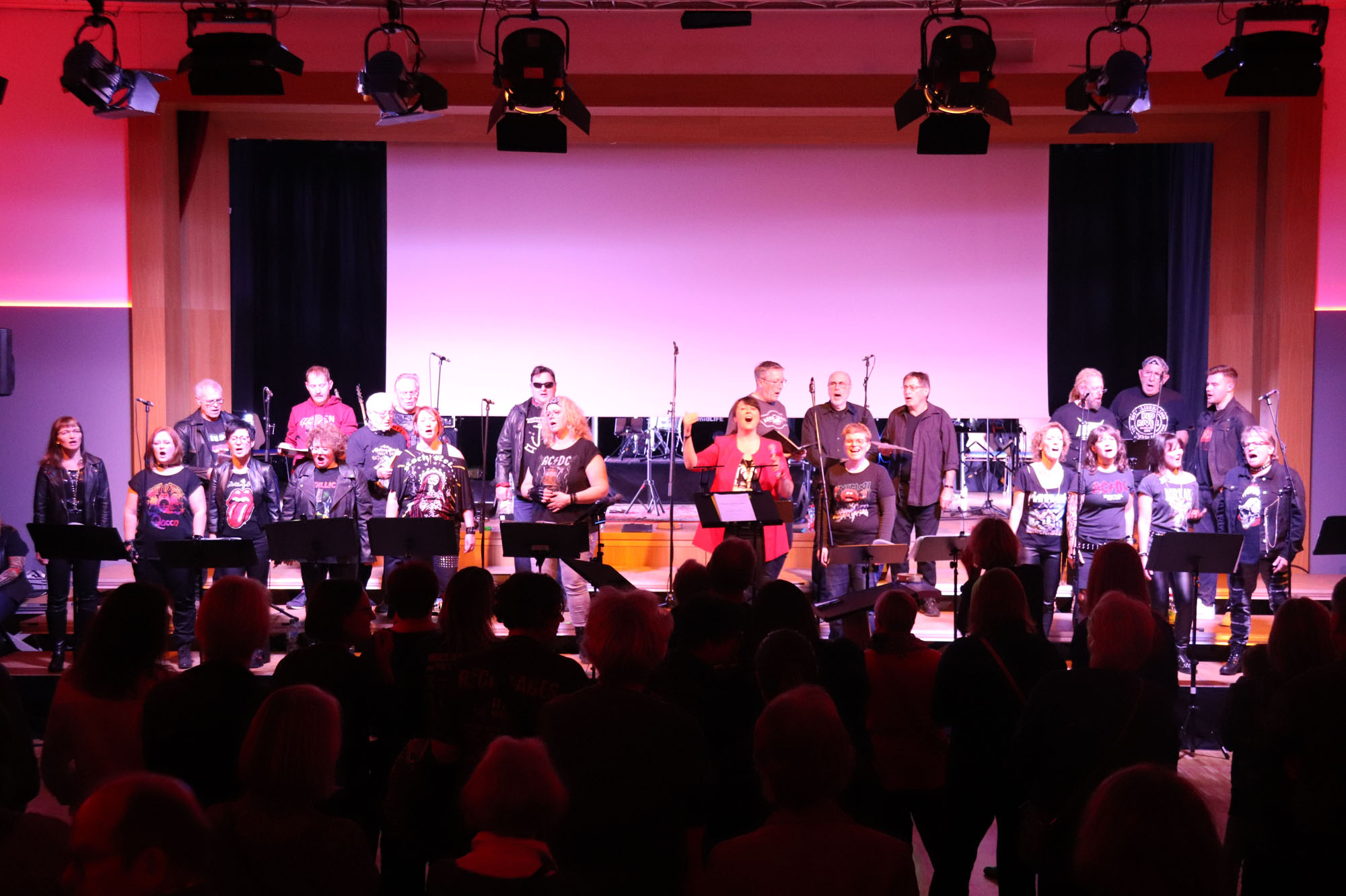 Das gemeinsame Rockkonzert war ein Mega-Erfolg für den GVE. In dieser Bewertung stimmten alle Besucherinnen und Besucher der ausverkauften Veranstaltung überein. Dabei waren im Vorfeld zugegebenermaßen nicht alle Chormitglieder so euphorisch wie Dirigentin Nelli Holzki, als sie das Vorhaben erstmals vorschlug. Schließlich galt es, mit Rockmusik und Chorgesang zwei musikalische Richtungen unter einen Hut zu bringen, die auf den ersten Blick nur schwer vereinbar sind.