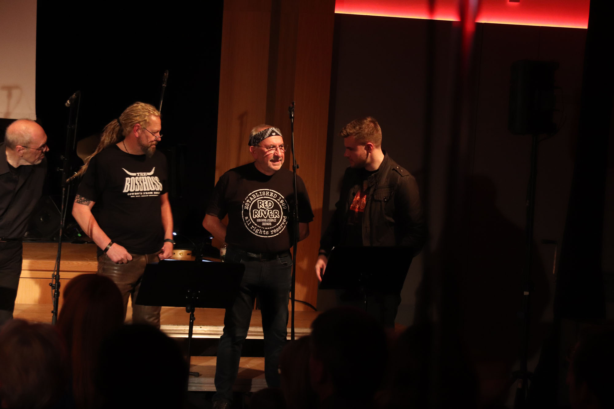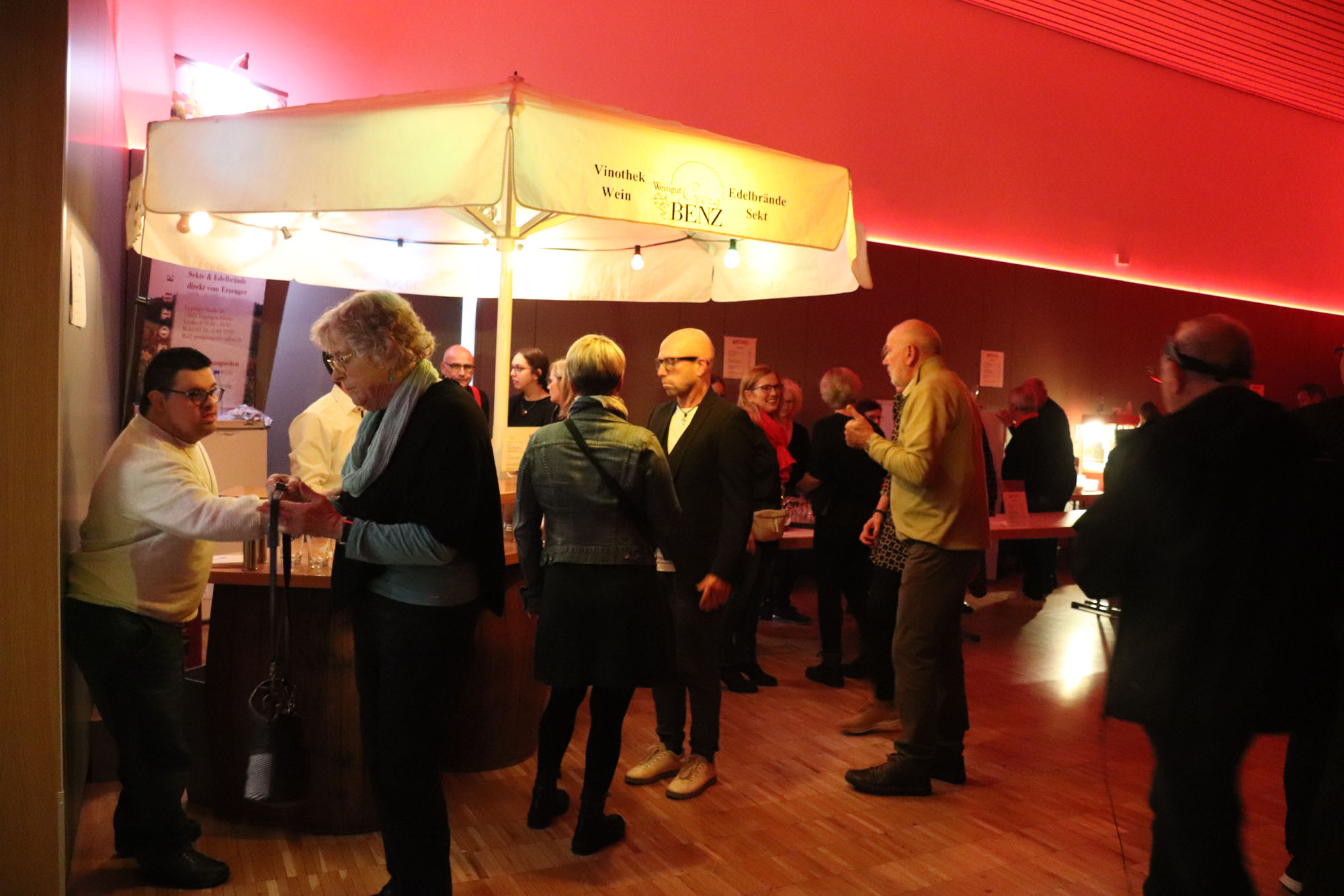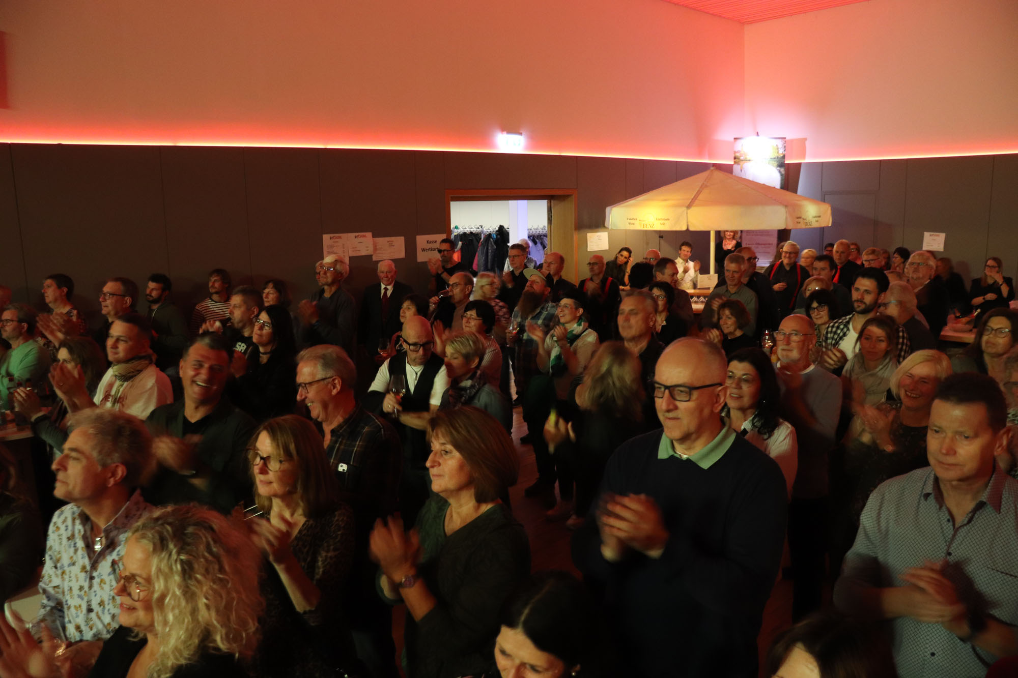 Ein Novum, das sich sehr bewährt hat, stellt die Tatsache dar, dass die komplette Bewirtung (neudeutsch!) „outgecourct“ wurde, also komplett von einem befreundeten Verein übernommen wurde. Die Sangeskolleginnen und - kollegen vom Chor „Atemlos Elsenz“ sorgten für das leibliche Wohl der Besucherinnen und Besucher. Dadurch hielten sie uns den Rücken frei. Wir hätten ohnehin am Veranstaltungstag kaum die Zeit gefunden, um Laugenstangen zu schmieren oder Getränke herbeizuschaffen, weil Nelli Holzki samstags schon um 17.00 Uhr zum Soundcheck bat! Danke, „liebe Atemlosen“, wir werden uns für Euere Unterstützung bei Gelegenheit revanchieren.