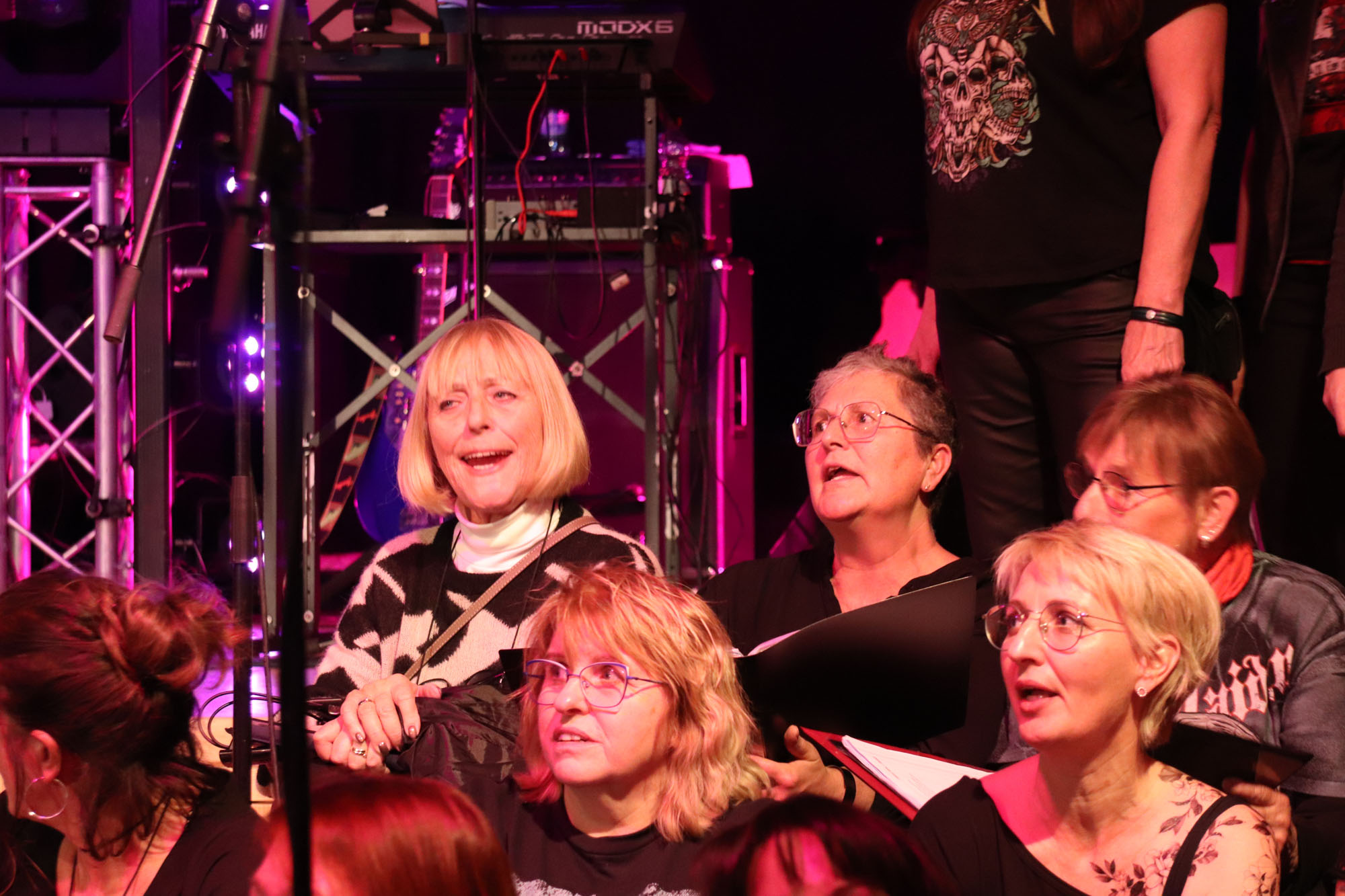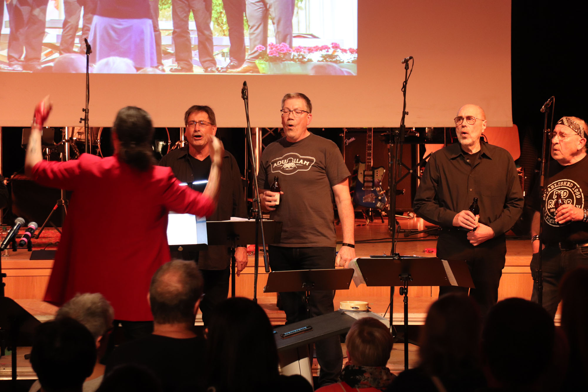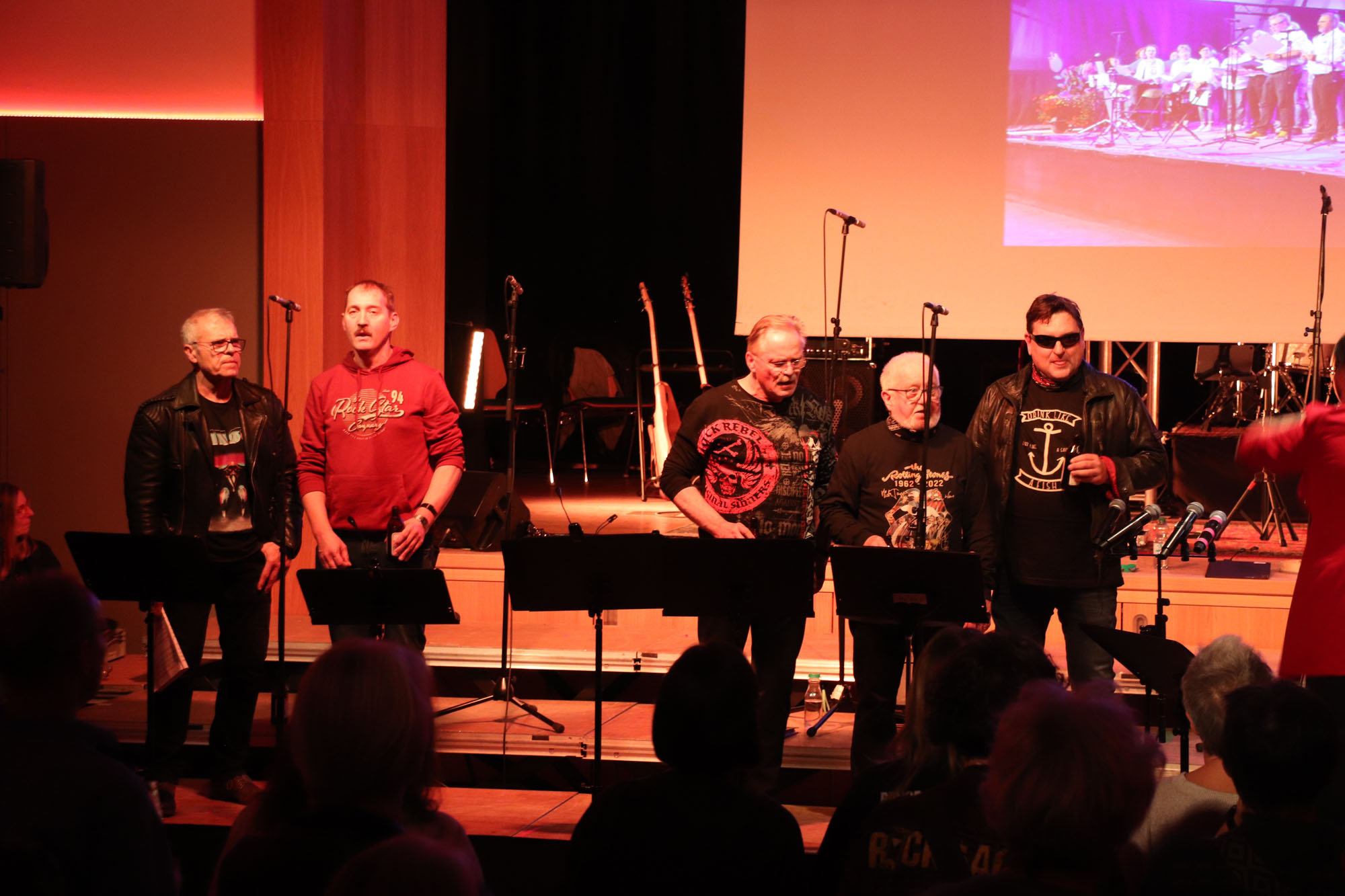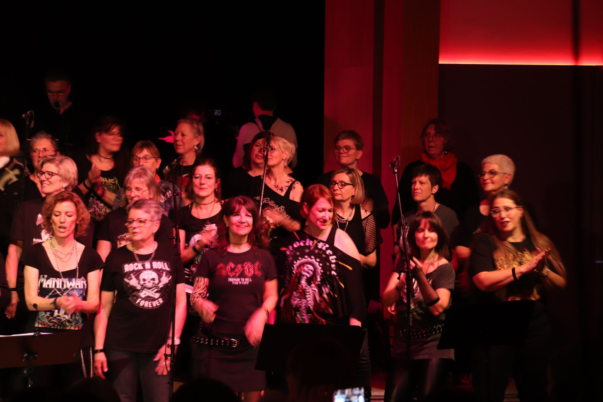 Aber schon der enorme Andrang zu dem eingerichteten Projektchor bewies ganz klar, dass Nelli richtig lag und den Zahn der Zeit getroffen hatte: Noch nie waren gleich 21 Sängerinnen und Sänger auf Zeit (19 bei den „KS“ und 2 bei „OM“) bei einem unserer bisherigen Projekte dabei. Und alle hielten bis zum Schluss durch und standen am 11.11.23 mit uns „alten Hasen“ auf der Bühne! Zwei oder drei Proben, wie in der Tagespresse zu lesen stand, reichten für dieses Vorhaben allerdings nicht ganz aus.