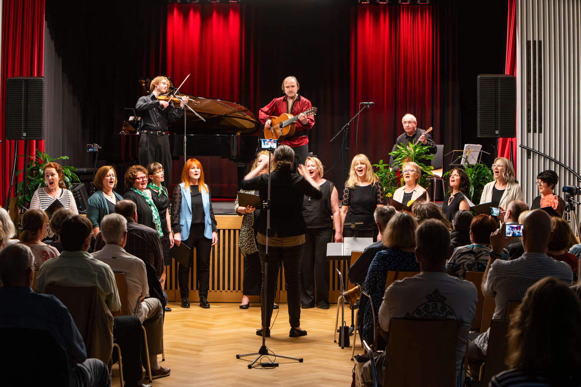 Zum Schluss des Programms formierten sich nochmals die „Kraichgau Singers“ vor der Bühne und sangen – begleitet von zwei Geigen, einer Balalaika und einer Gitarre – John Lennons Hit „Imagine“. Nelli fungierte dabei einmal mehr als Solistin. Das Publikum ging anschließend dankbar nach Hause. Niemand beschwerte sich darüber, dass die Veranstaltung mit einer knappen halben Stunde Verspätung endete, offenbar haben die Besucherinnen und Besucher die „Feurige Abendmusik“ uneingeschränkt genossen....