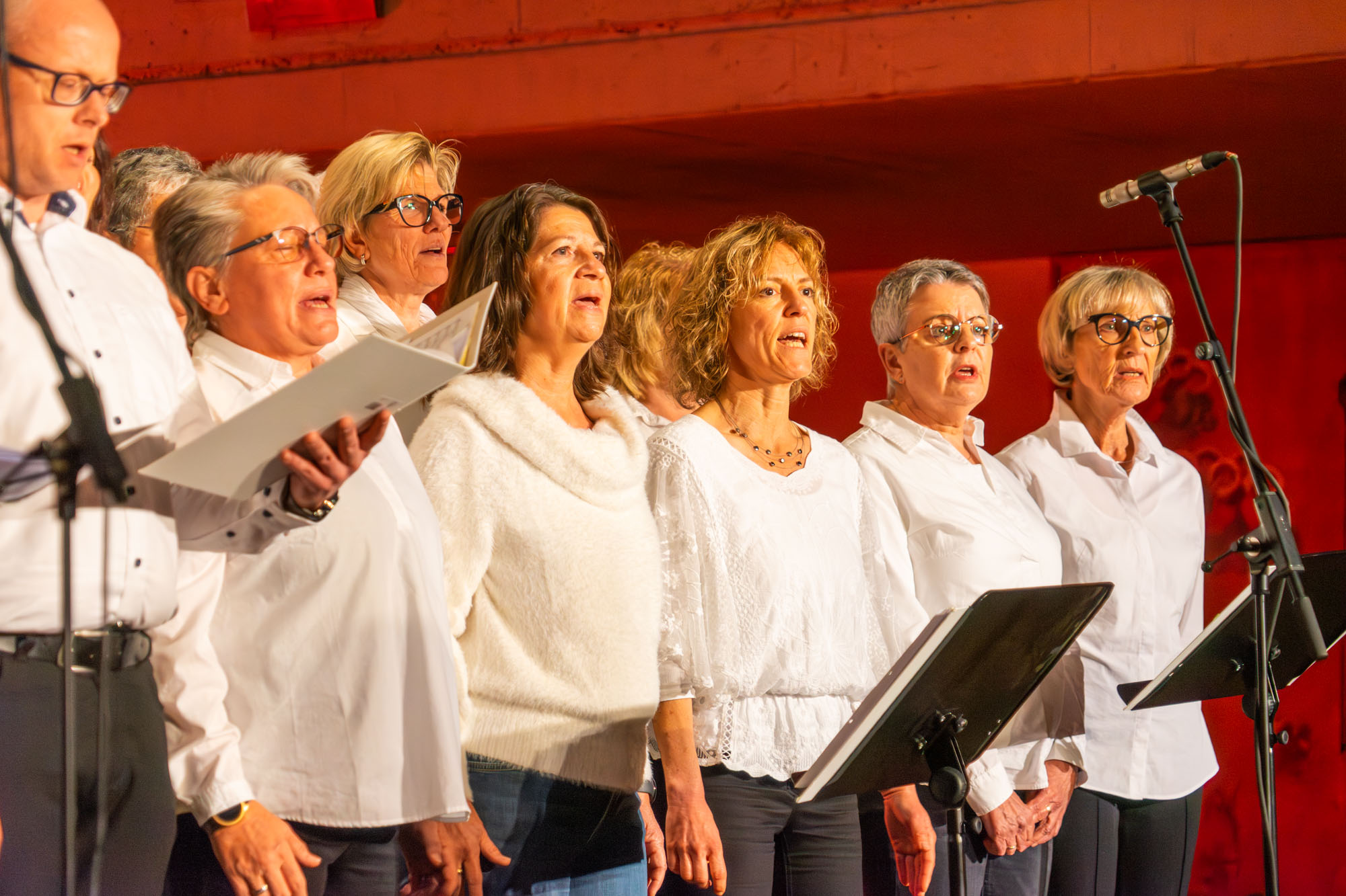 Anschließend trug Kerstin Renz für die Katholische Kirche einige Friedensimpulse vor, bevor das Vokalensemble „FOLKlassik“ auftrat. Der jüngste Spross des GVE wurde bei der jüngsten Generalversammlung im März 25 in den Verein aufgenommen und er besteht aus sieben stimmgewaltigen Damen, die zunächst „Tebe Poem“ accapella und anschließend drei weitere Songs mit Klavierbegleitung vortrugen. Danach folgte der Hauptact der „KS“. Sie präsentierten mit „For The Beauty Of The World“ (Für die Schönheit dieser Welt) ein christliches Lied, das 1864 geschrieben wurde. Bei John Lennons „Imagine“ übernahm Nelli Holzki den Solopart. Die im Anschluss vorgetragenen Beiträge „Glory“ (Titelsong aus dem Bürgerrechtsdrama „Selma“) und „Peace On Earth“ rundeten nach etwas mehr als zwei Stunden ein unterhaltsames und kurzweiliges Programm ab.