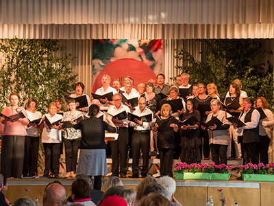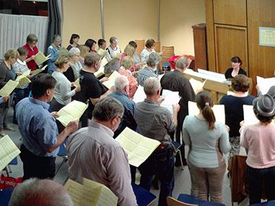 Unsere neue Dirigentin Nelli Holzki begrüßte knapp 40 Teilnehmer, darunter etwa 15 Gastsängerinnen und -sänger.